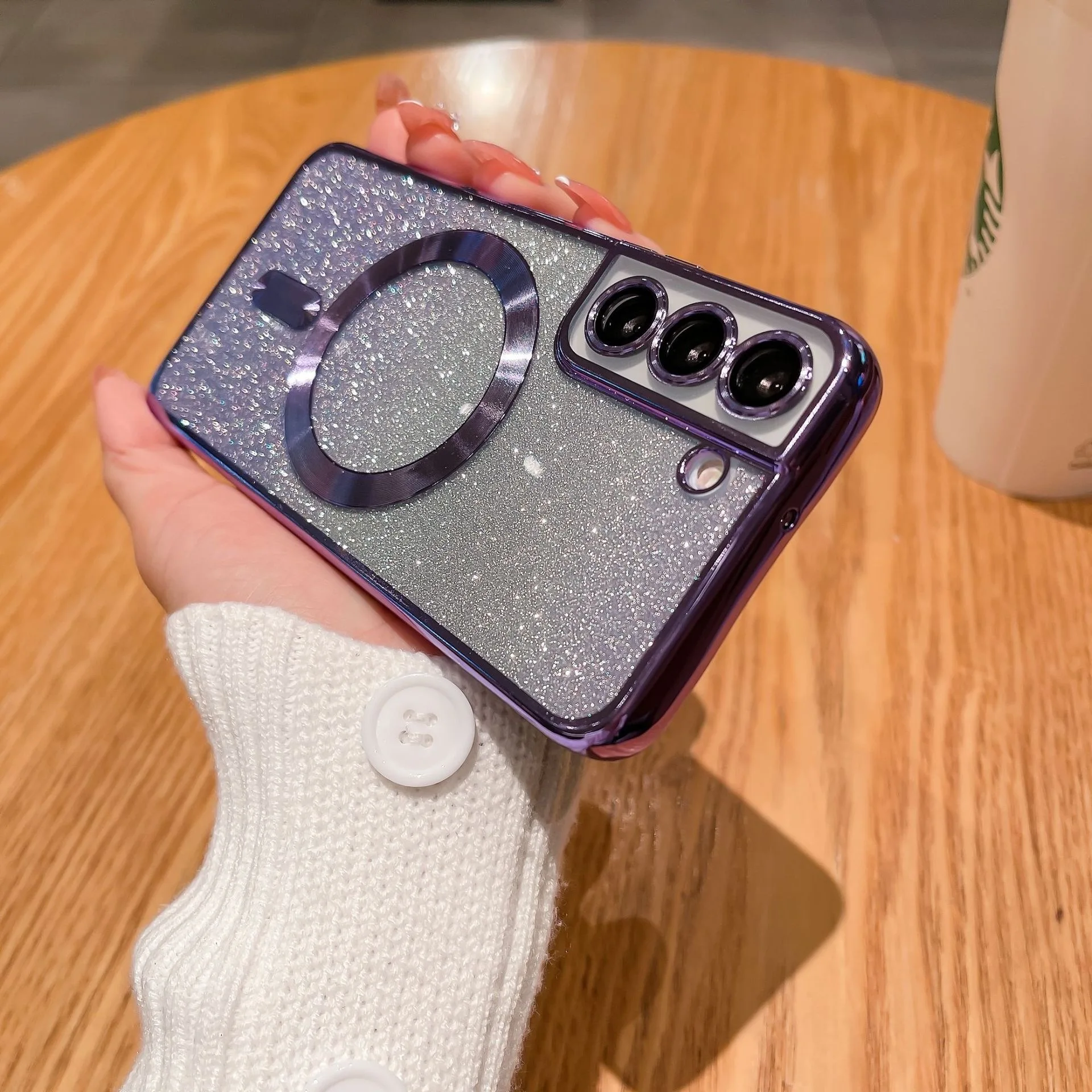 Funda chapada de lujo para Samsung Galaxy S23 S22 S21 FE Ultra Plus anillo ostentoso de Gel de sílice cubierta trasera de teléfono púrpura