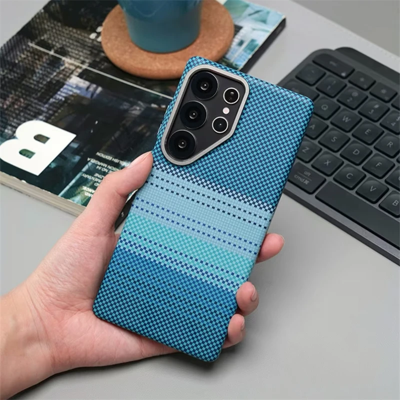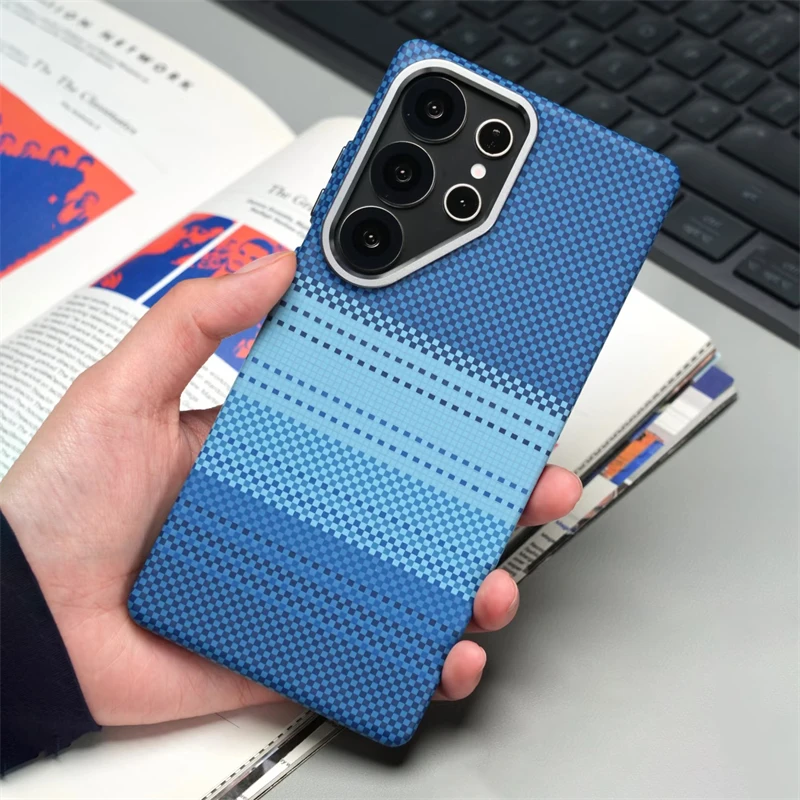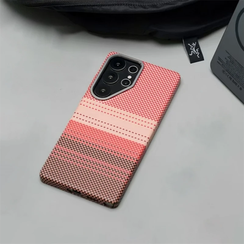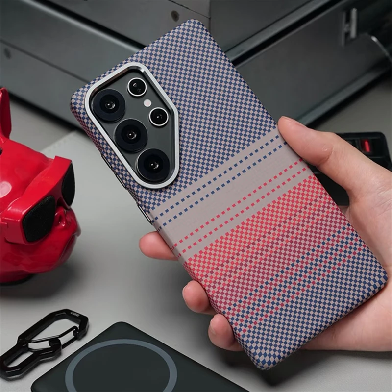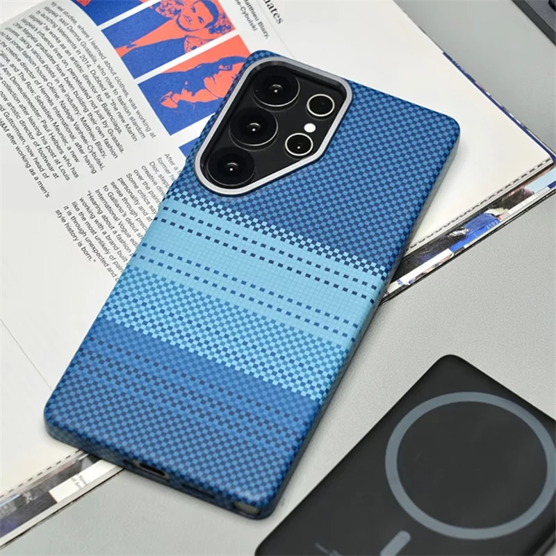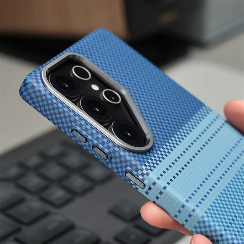 Comprar Para Samsung Galaxy S25 Ultra Plus 3D Pixel Relief textura de fibra de carbono Magsafe funda de teléfono carga inalámbrica mate PC cubierta dura