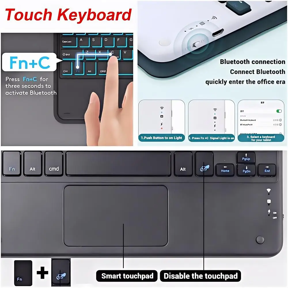 4. Touchpad keyboard: Open the keyboard, press Fn+C, and then find the Bluetooth connection with "Keyboard" in the device Bluetooth list.