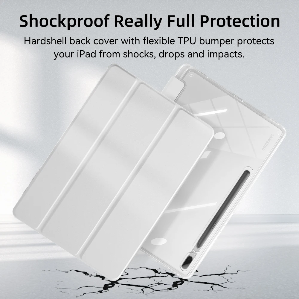 La cubierta trasera rígida con parachoques de TPU flexible protege su iPad de golpes, caídas e impactos.