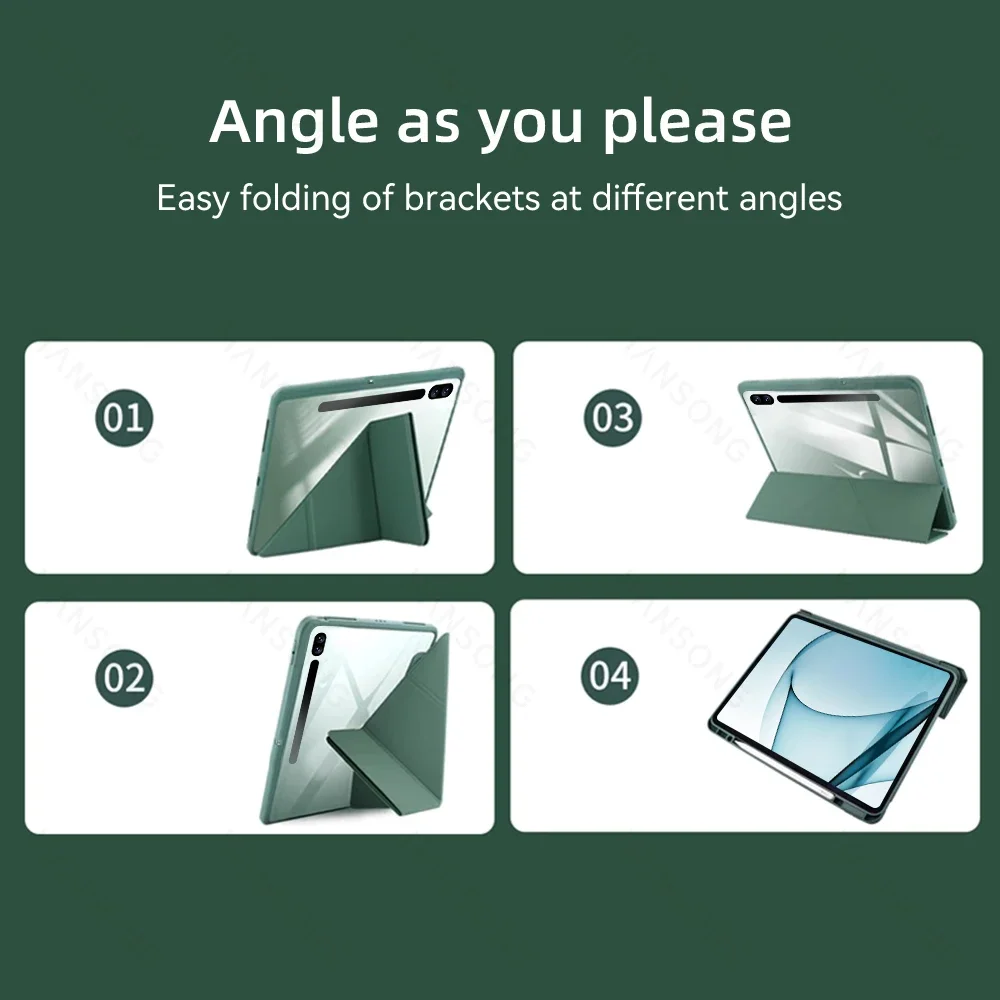 Funda para Samsung Galaxy Tab S9 según lo descrito. El ángulo de retrato funciona mejor desde la mesa. El ángulo horizontal es demasiado pronunciado para mi gusto, a menos que la tableta se coloque a la altura de los ojos en lugar de a la altura de la mesa.