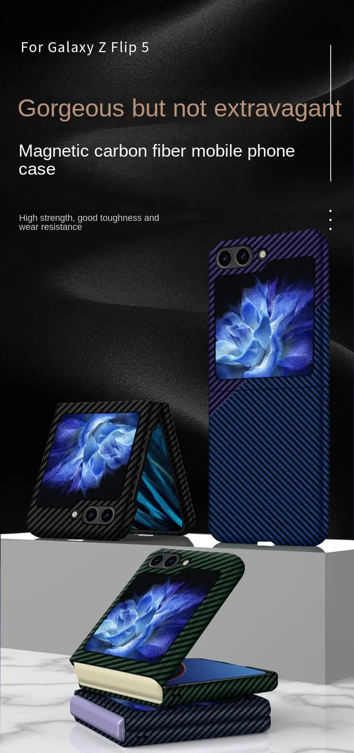 Para Samsung Galaxy Z Flip 5 4 3 funda dura de fibra de carbono delgada funda protectora trasera para Samsung Z Flip5 4 3 carcasa de teléfono