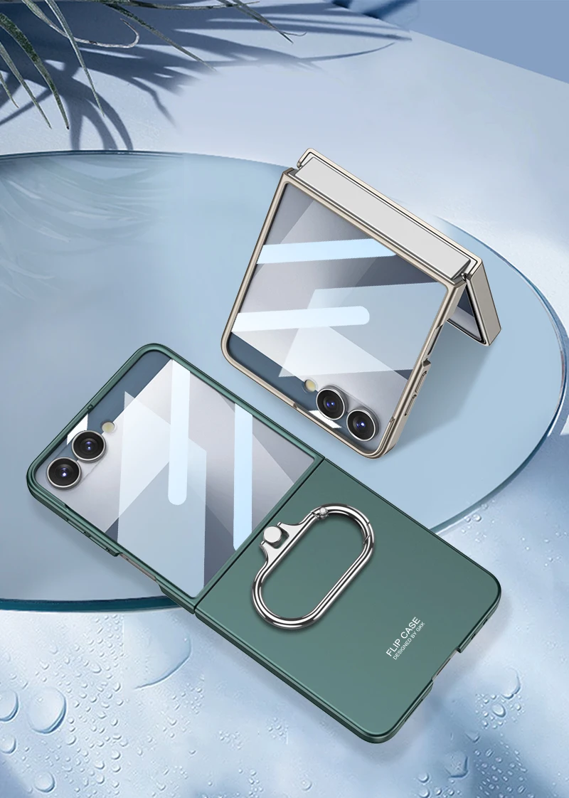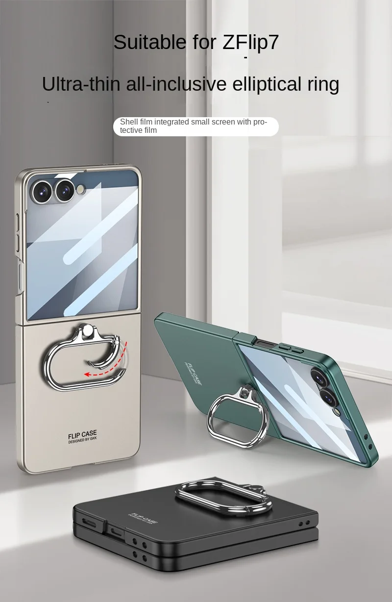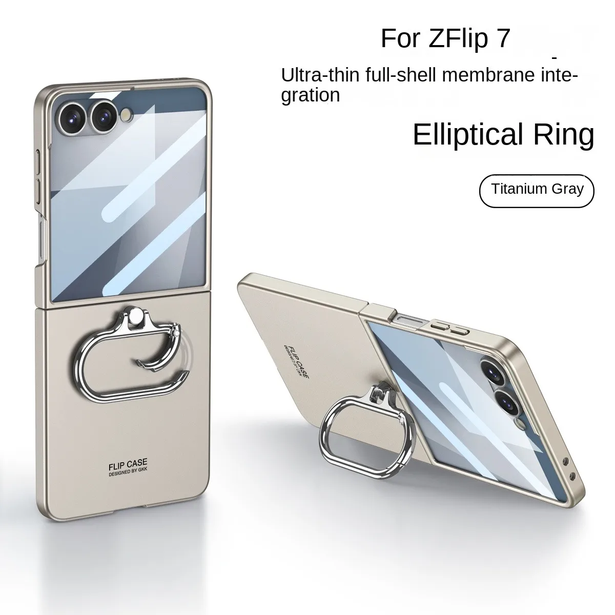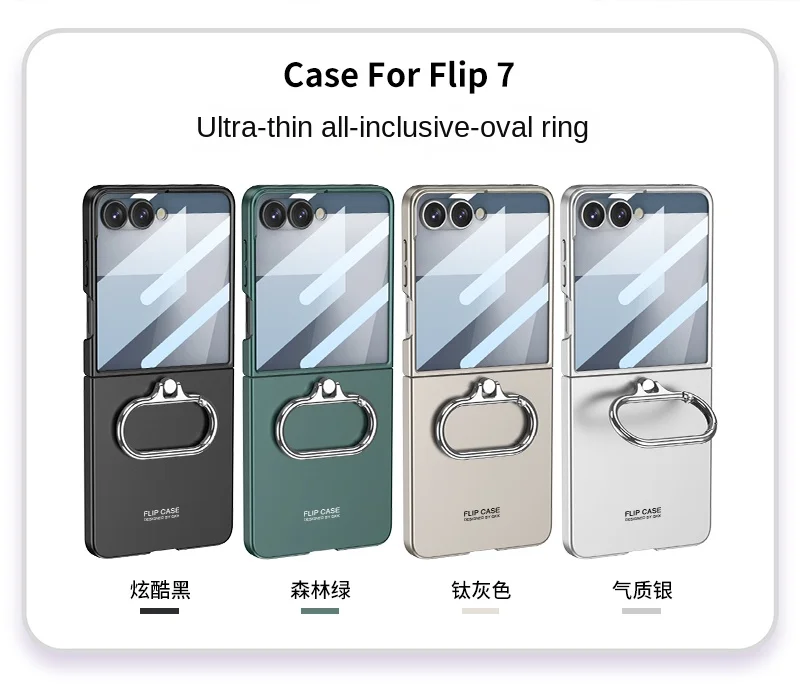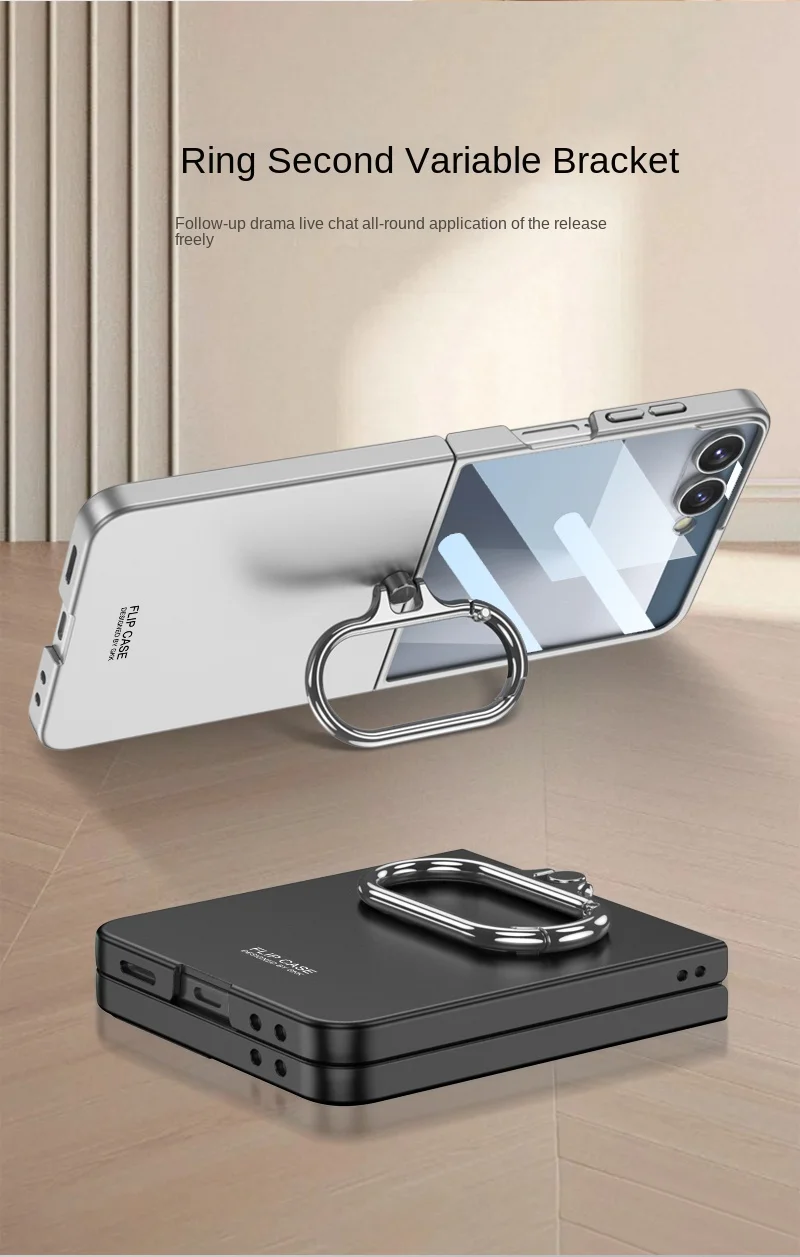 Para Samsung Galaxy Z Flip 7 funda dura delgada con soporte de anillo funda protectora trasera para Samsung Z Flip7 funda completa para teléfono