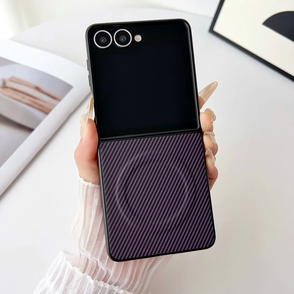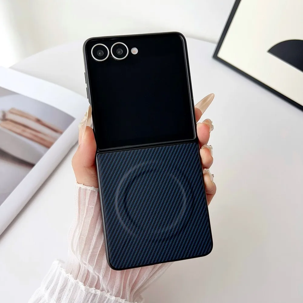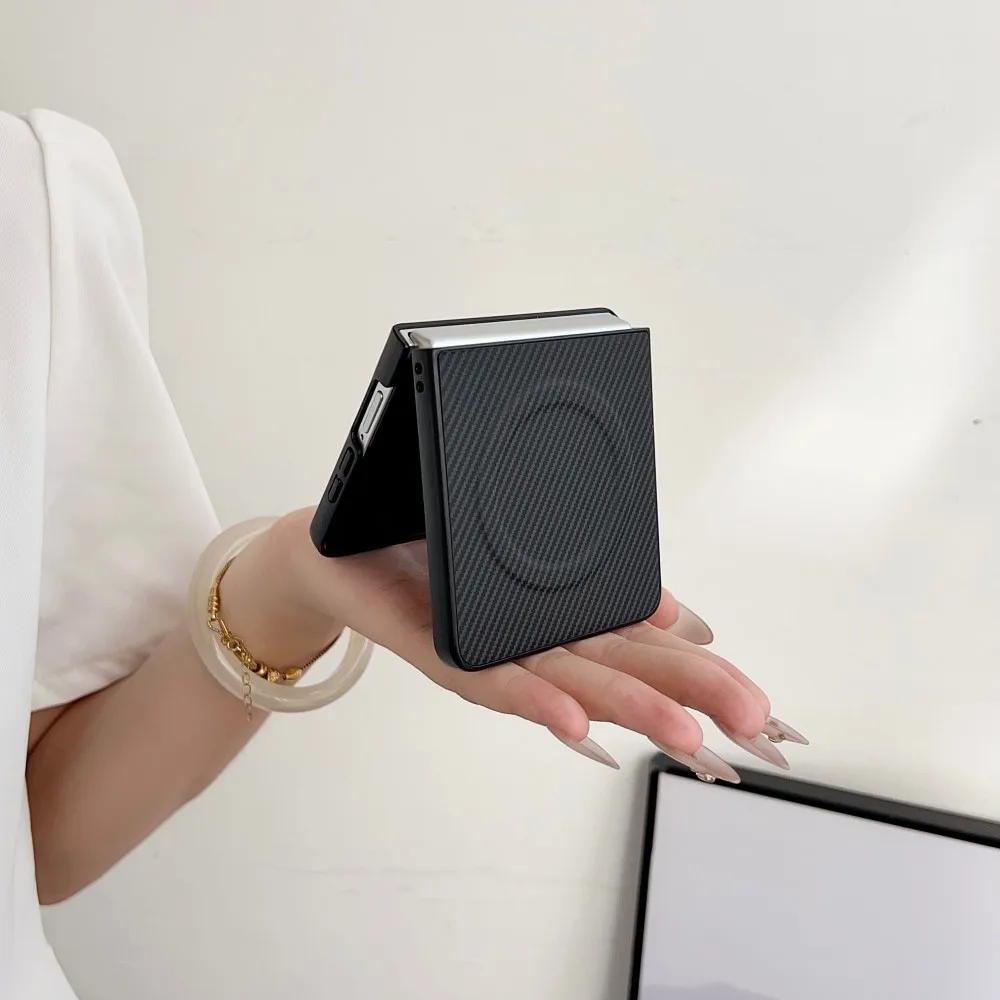 Para Samsung Galaxy Z Flip 7 funda dura de silicona de fibra de carbono magnética a prueba de golpes funda protectora trasera para Z Flip 7 6 5 4 3