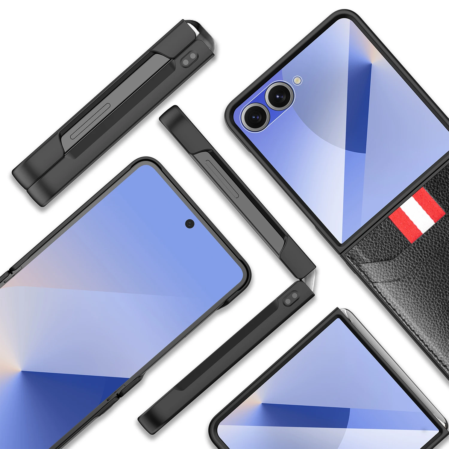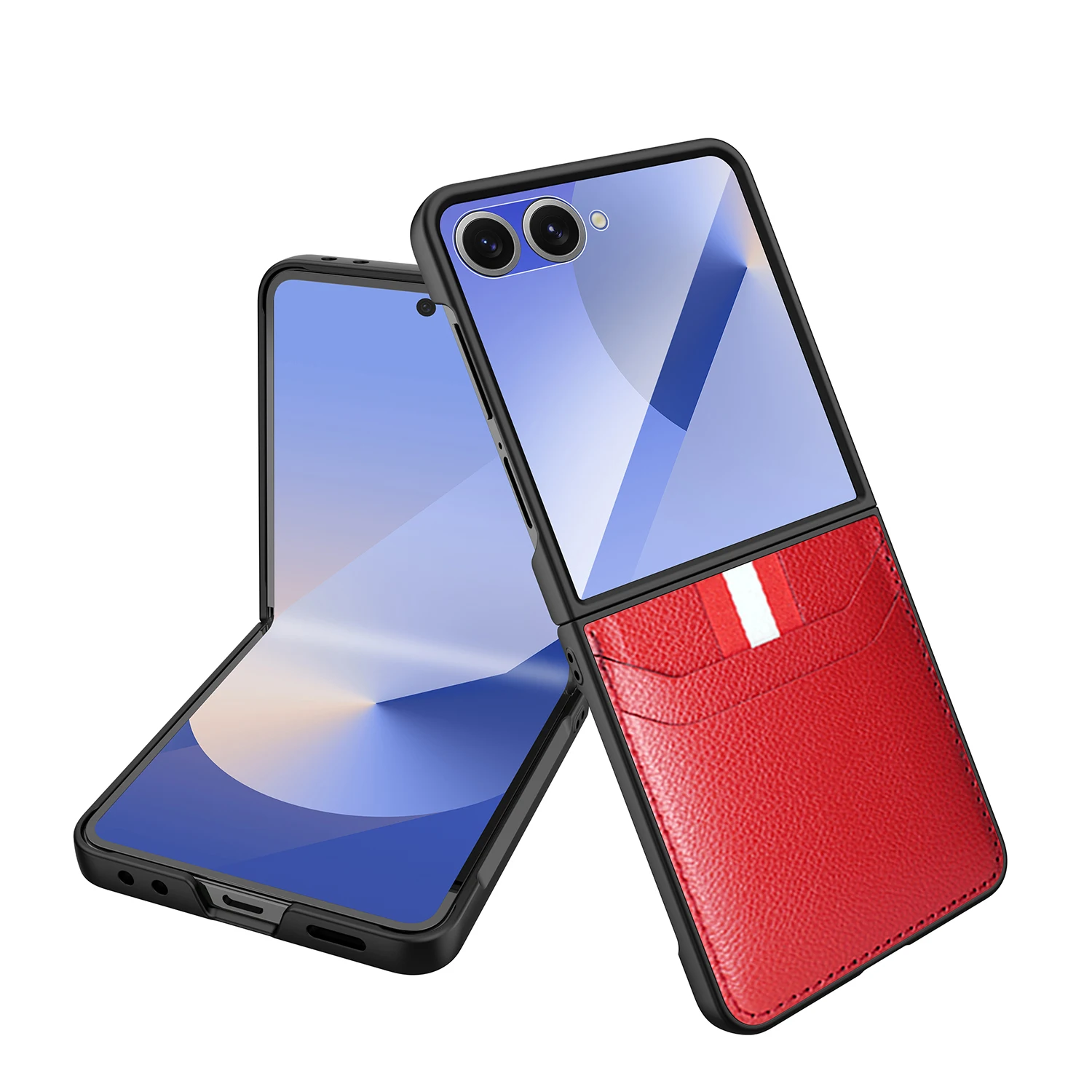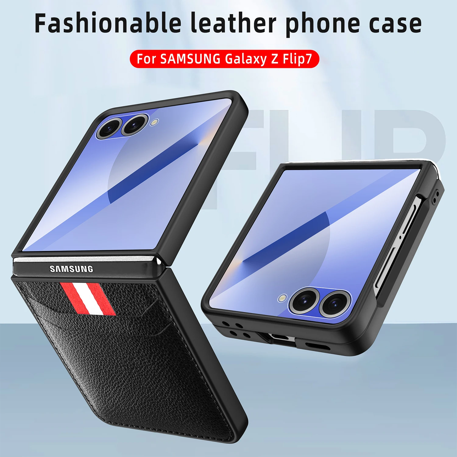 Para Samsung Galaxy Z Flip 7 funda de lujo Lichee PU cuero piel tarjeta funda protectora trasera para Samsung Z Flip 7 6 5 4 Shell