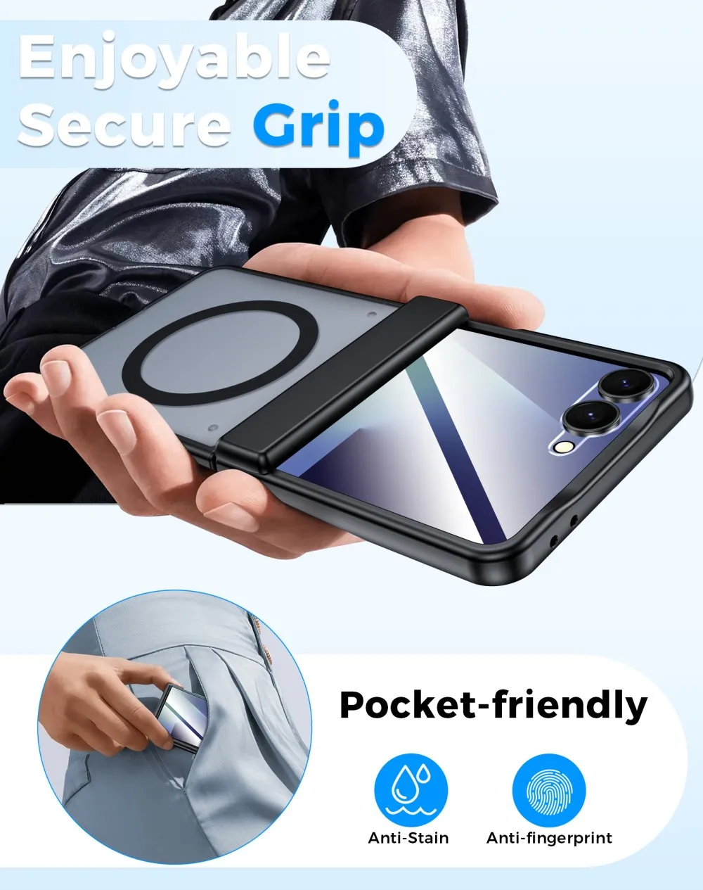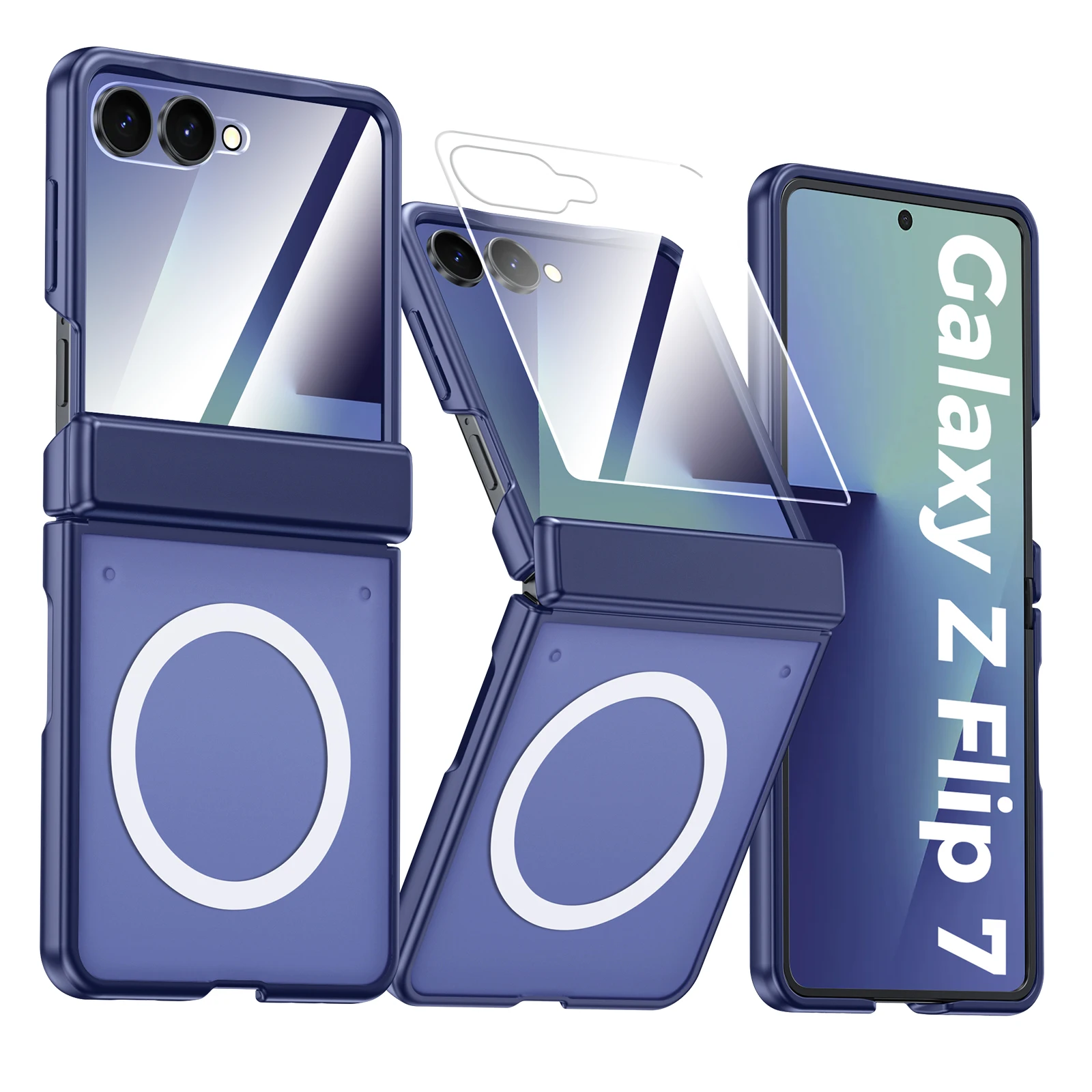 Para Samsung Galaxy Z Flip7 funda dura transparente bisagra media magnética carga inalámbrica proteger la cubierta trasera para Z Flip 7 Shell
