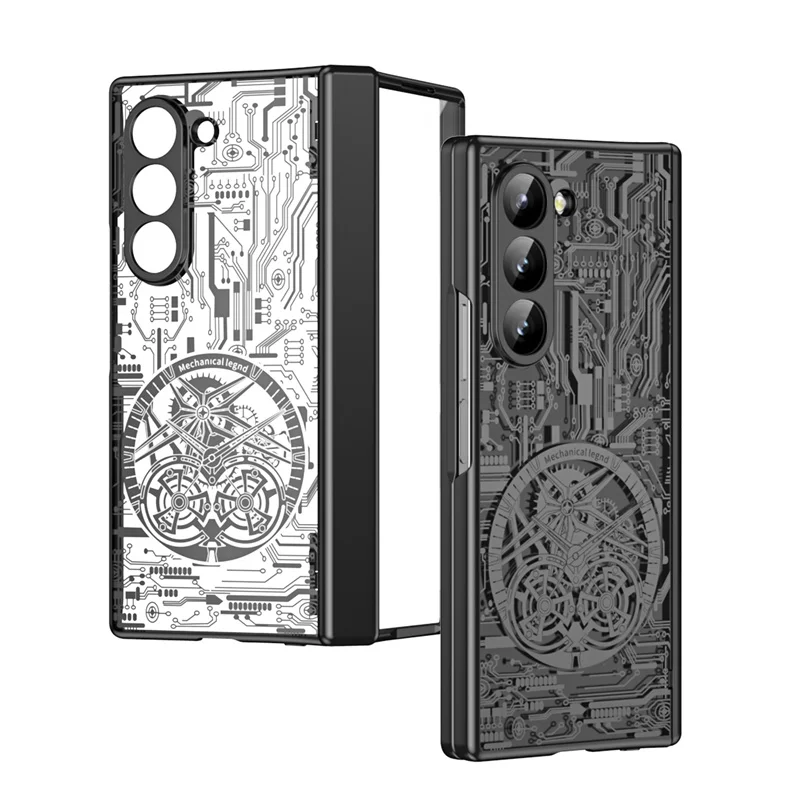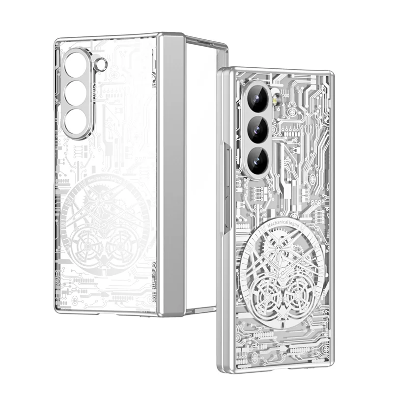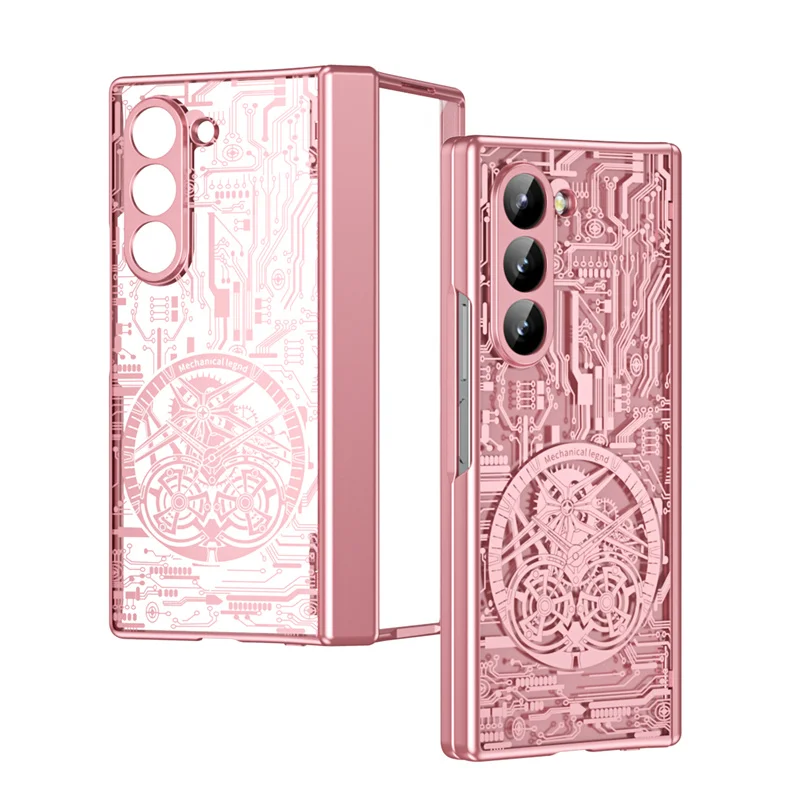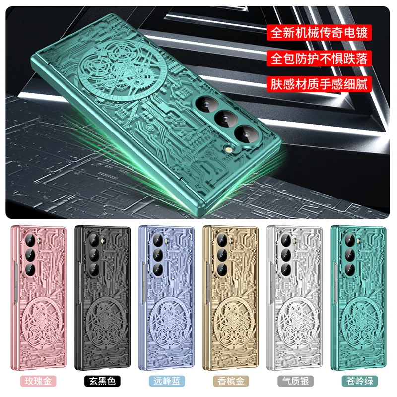 Comprar Para Samsung Galaxy Z Fold 7 6 5 4 3 5G bisagra de moda mecánica galvanoplastia funda de teléfono Protector de pantalla 360 ° Funda protectora