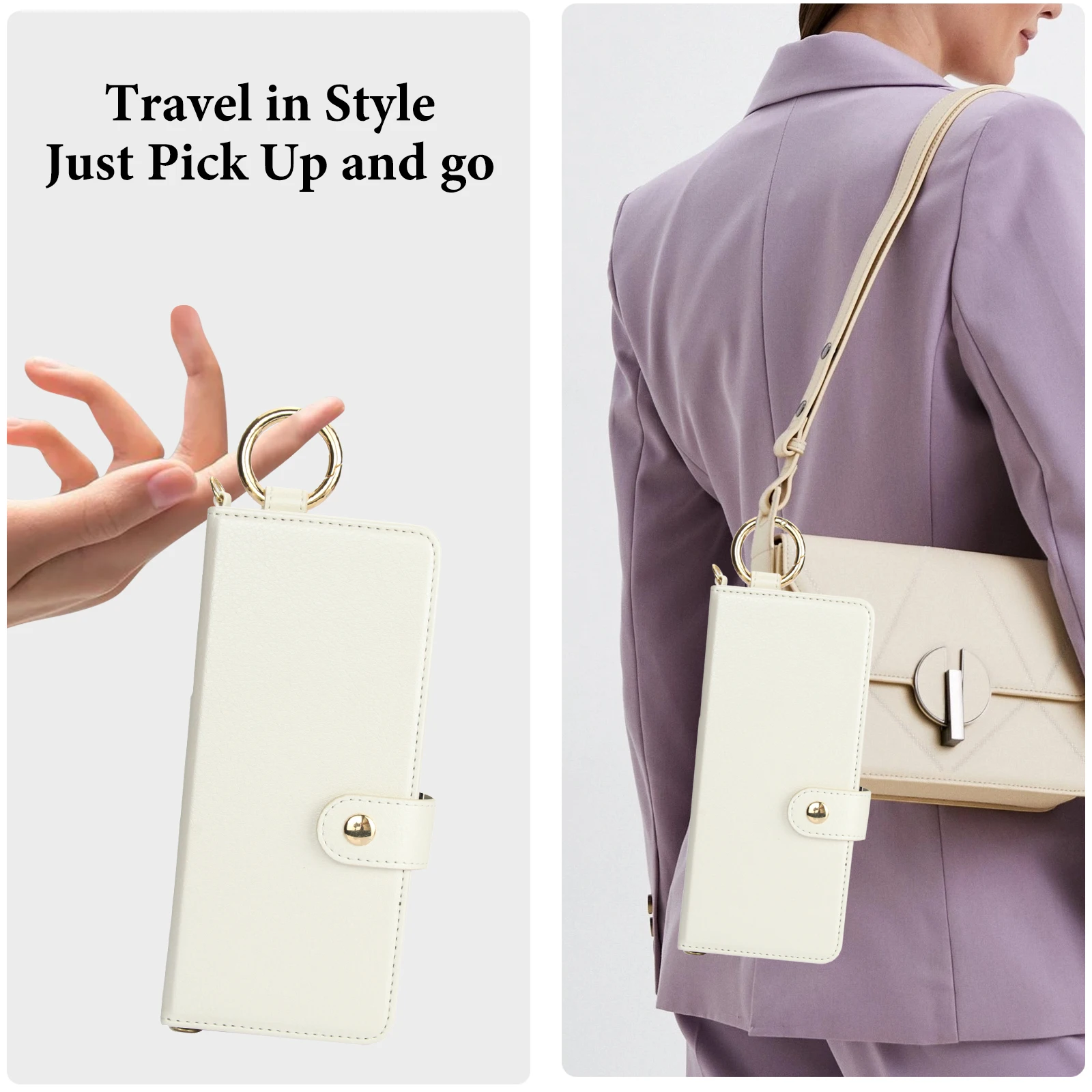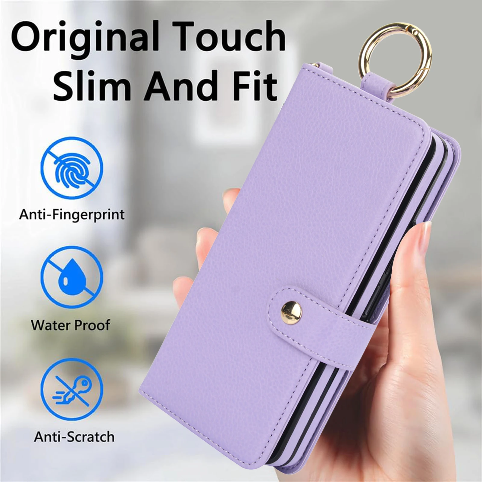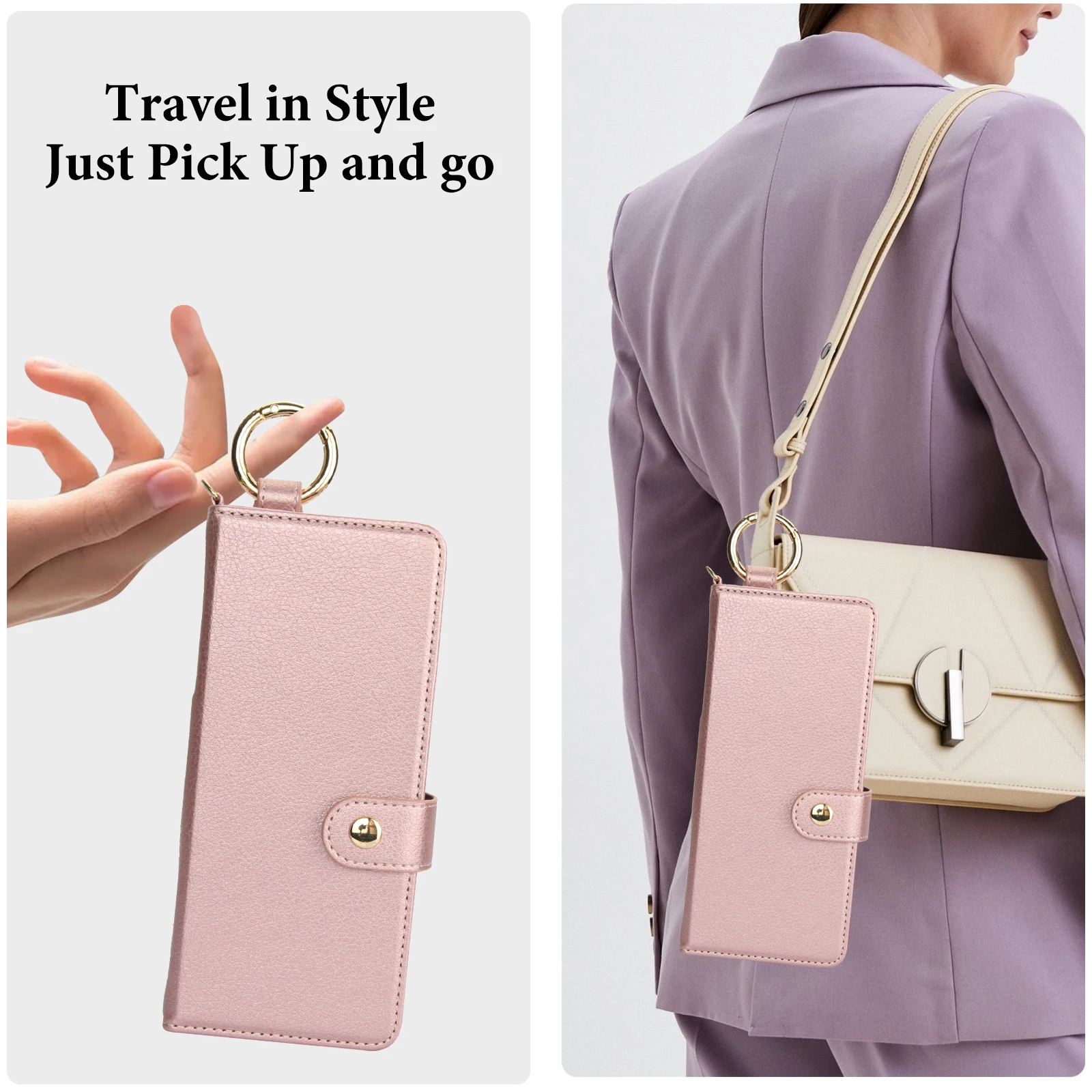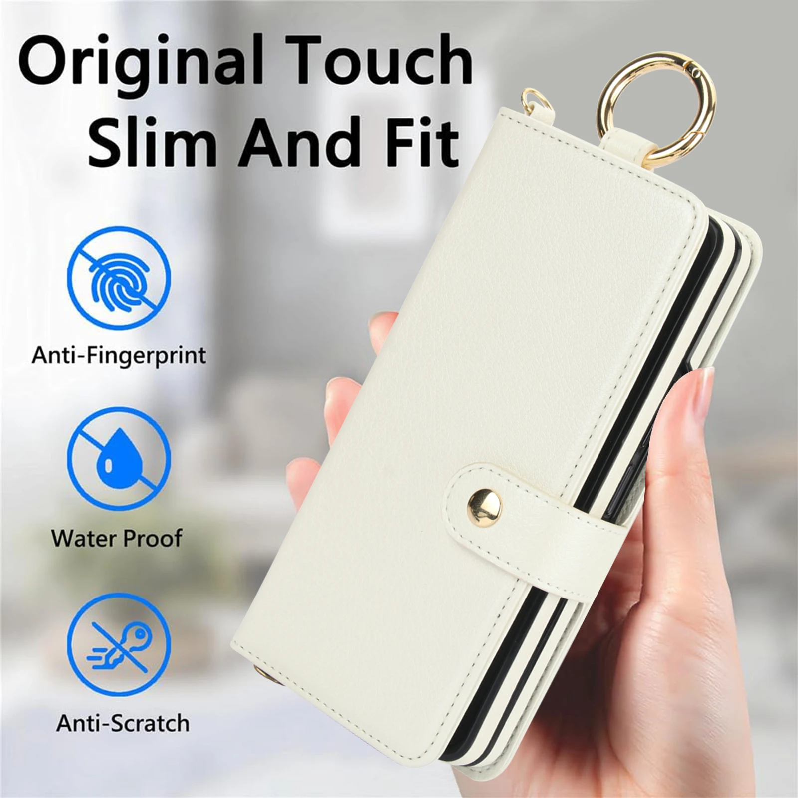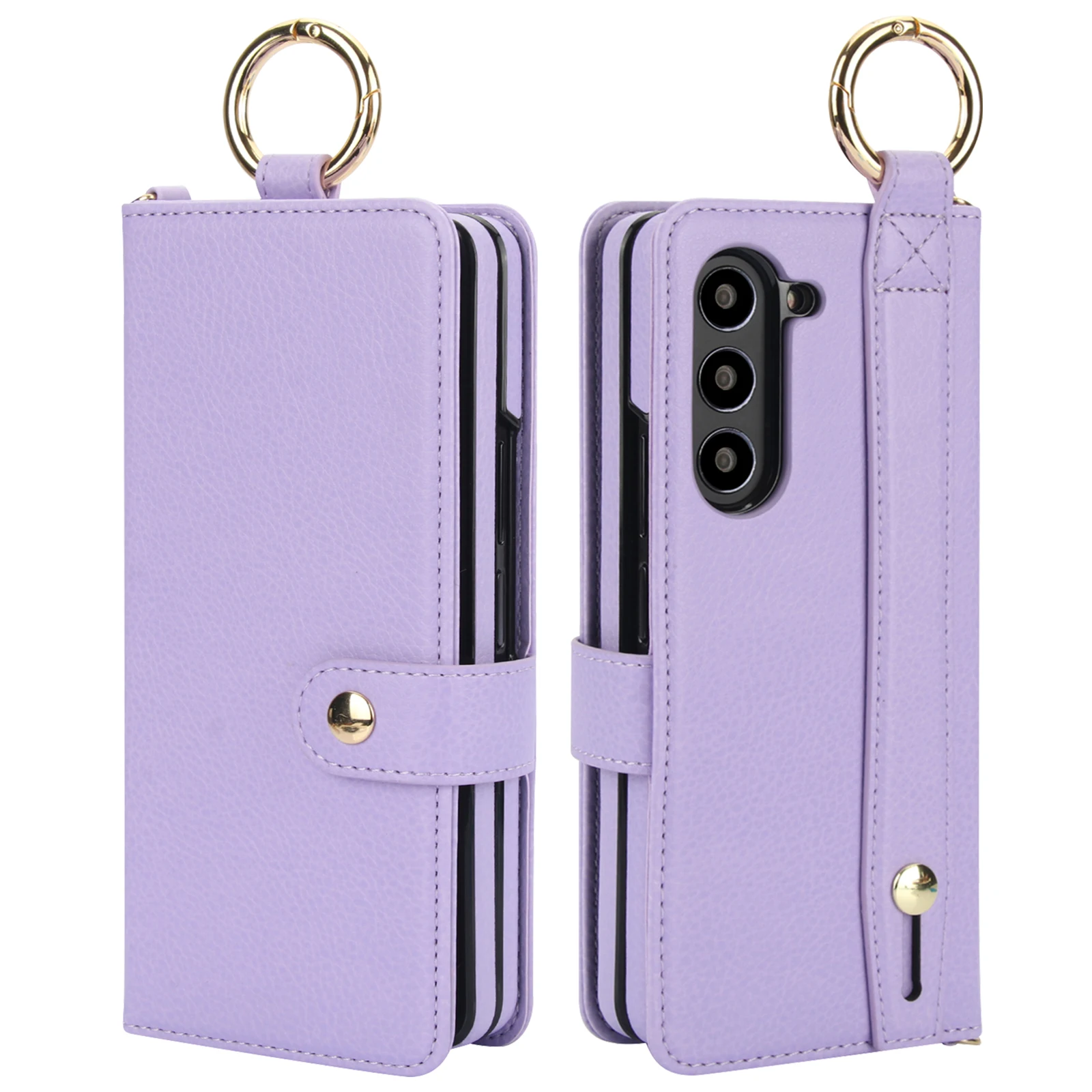 Para Samsung Galaxy Z Fold 7 6 5 4 3 5G cordón cruzado Funda de cuero tipo billetera para tarjetas cuerda para la muñeca funda con soporte abatible con ranura para bolígrafo