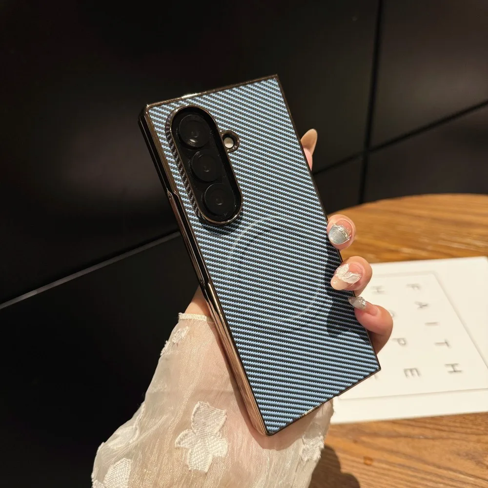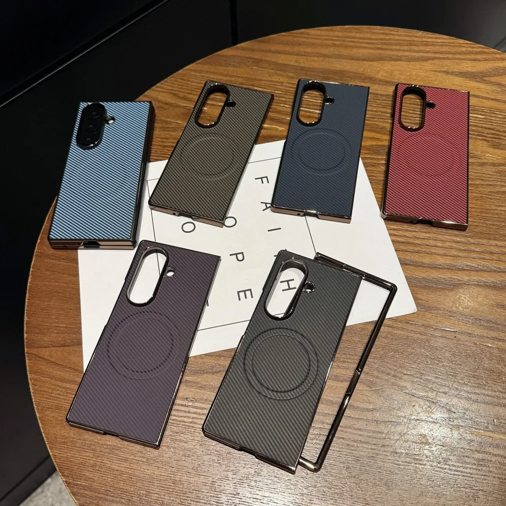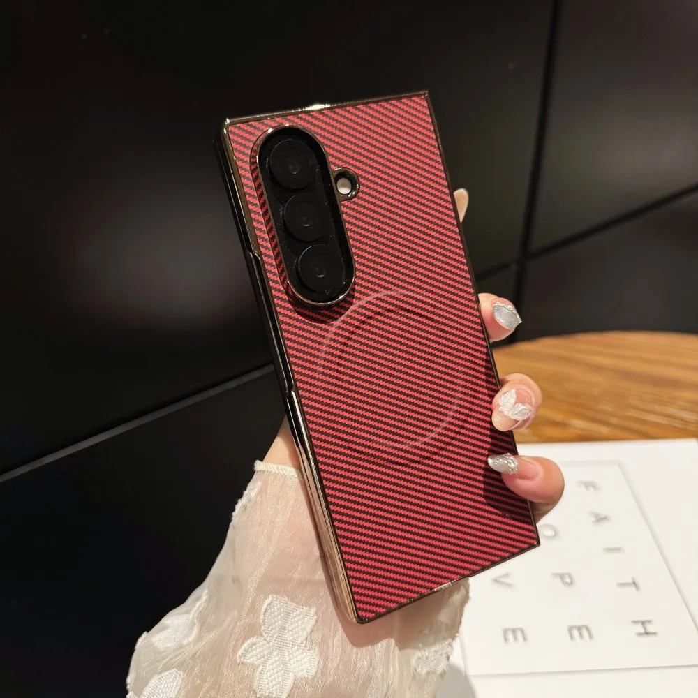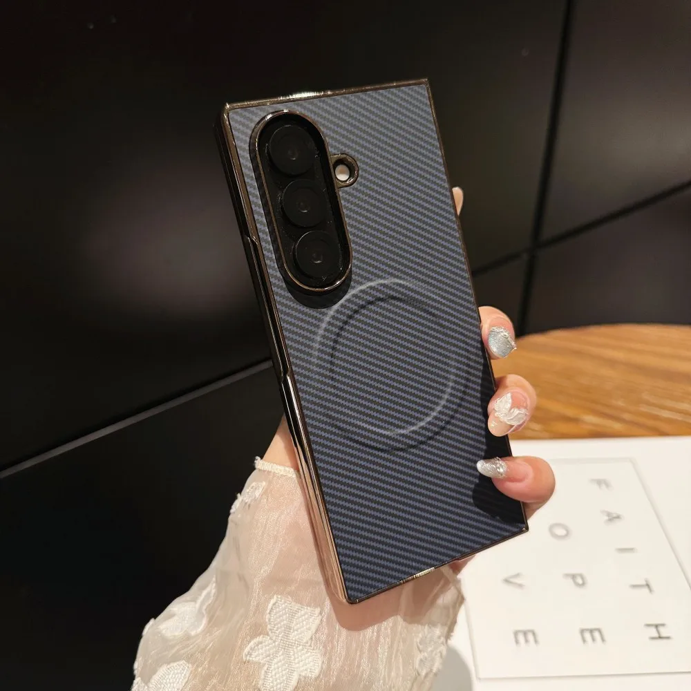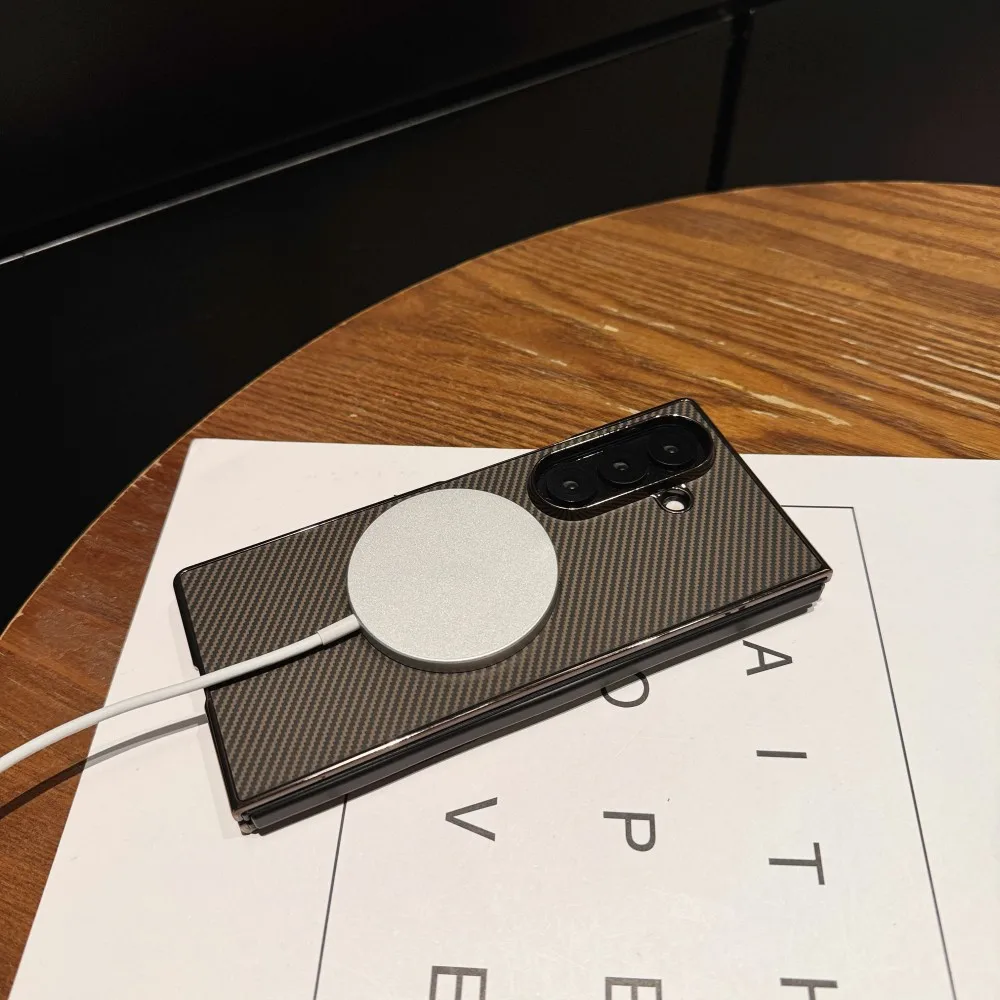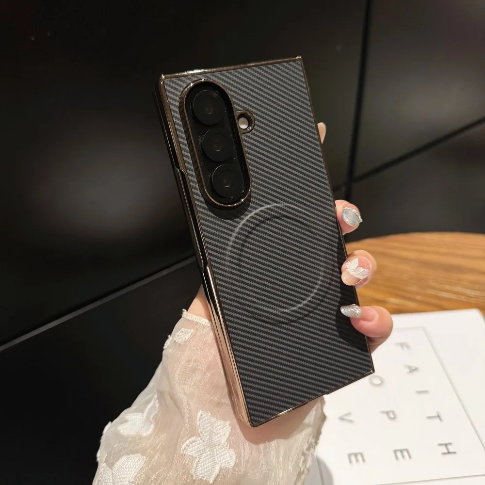 Para Samsung Galaxy Z Fold 7 funda revestimiento duro de fibra de carbono magnética carga inalámbrica cubierta trasera protectora para Z Fold7 Shell