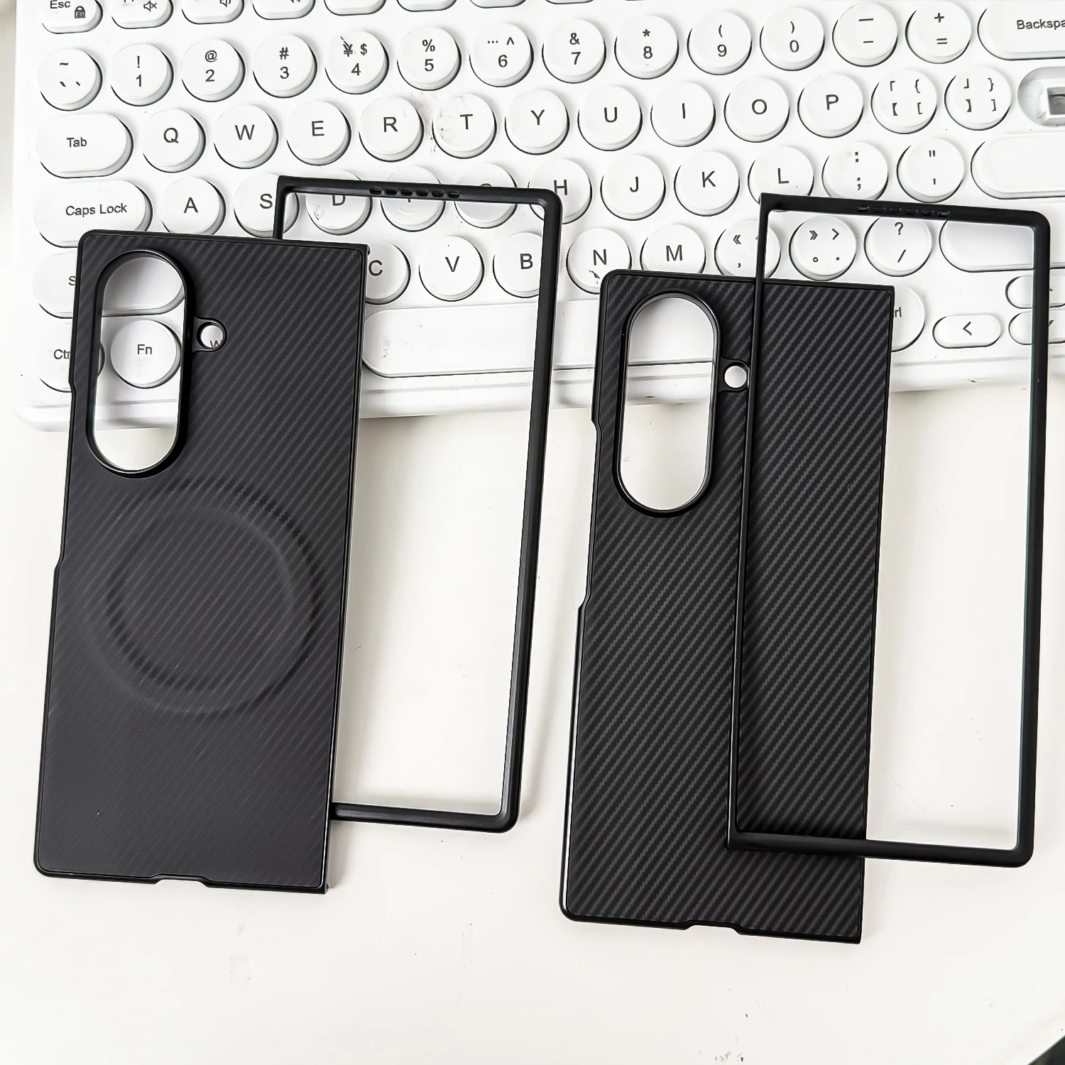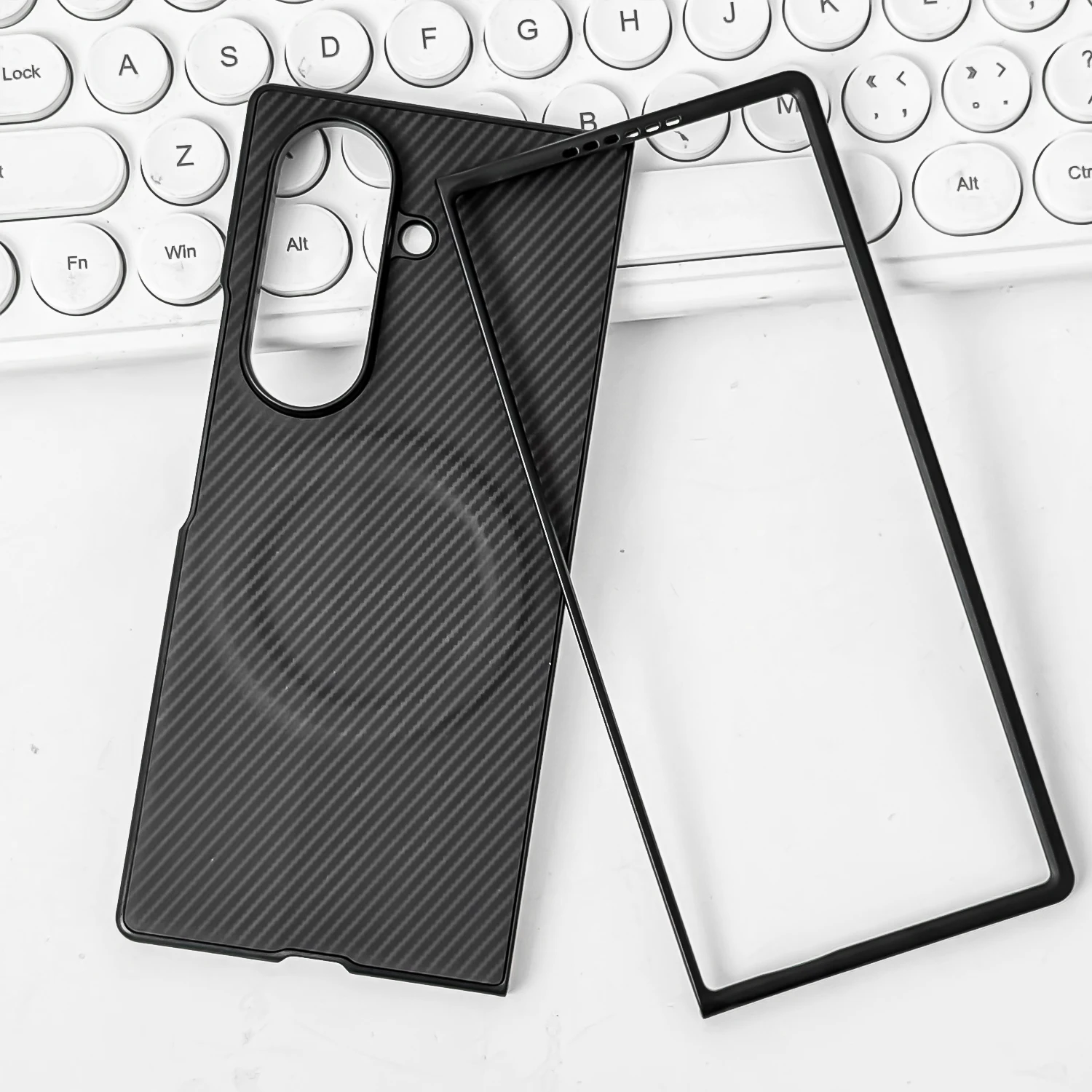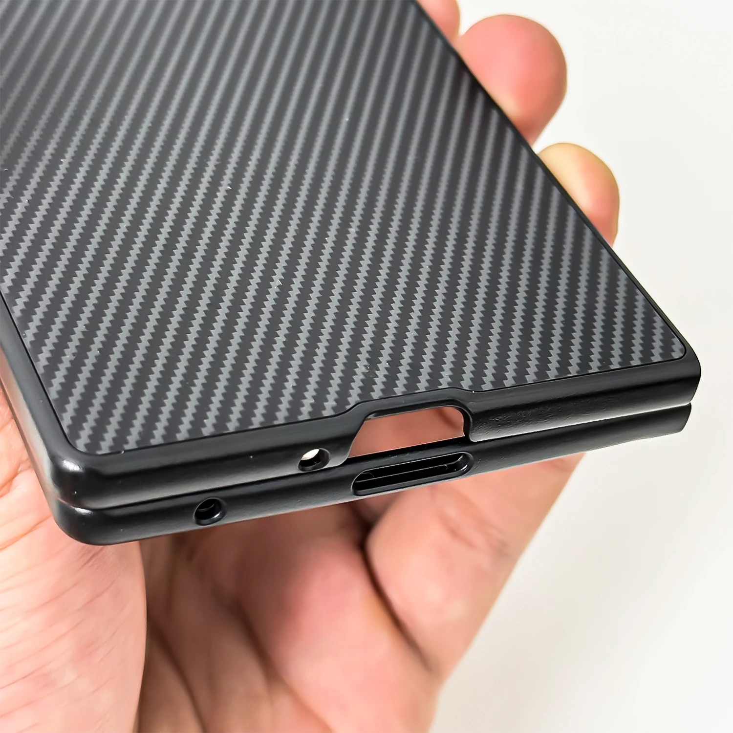 Categoría: Para Samsung Galaxy Z Fold 7 Funda de cuero texturizada de fibra de carbono magnética