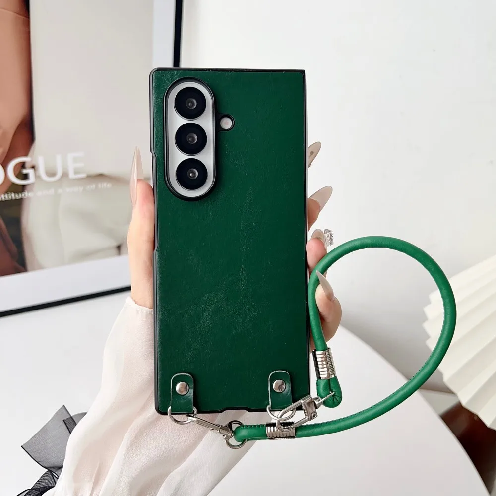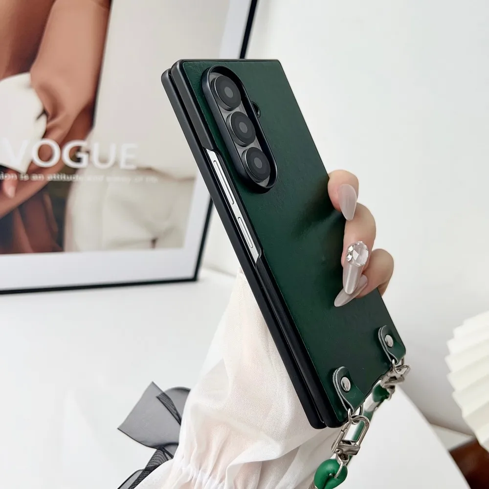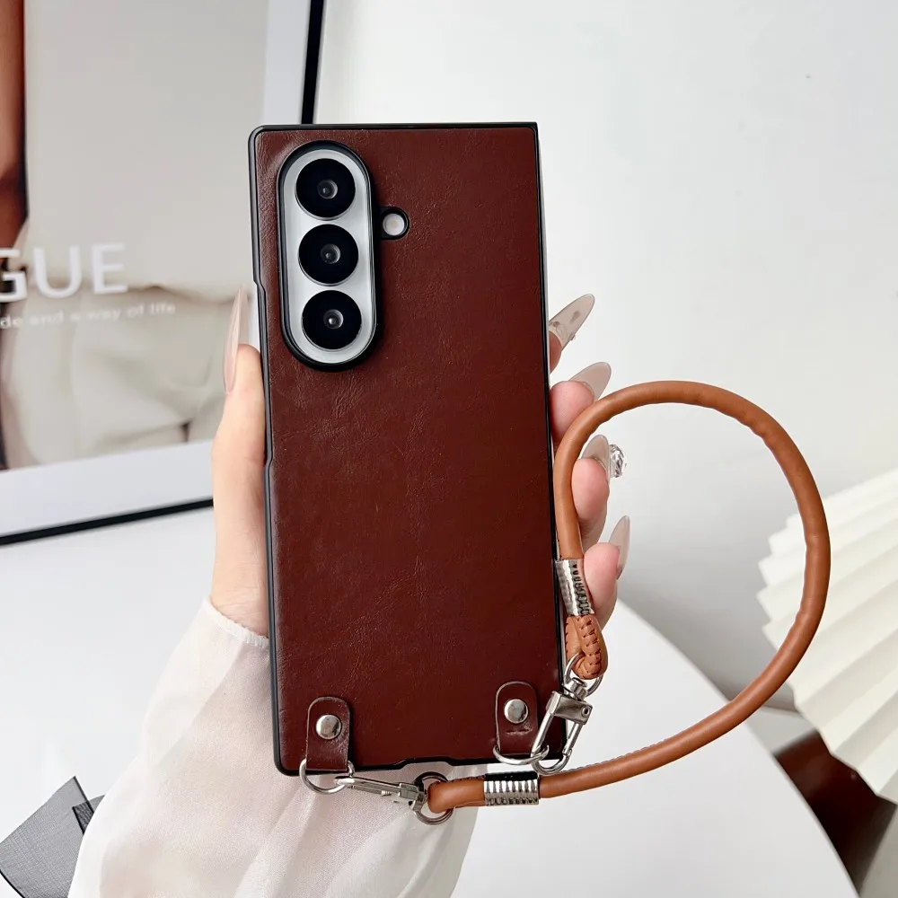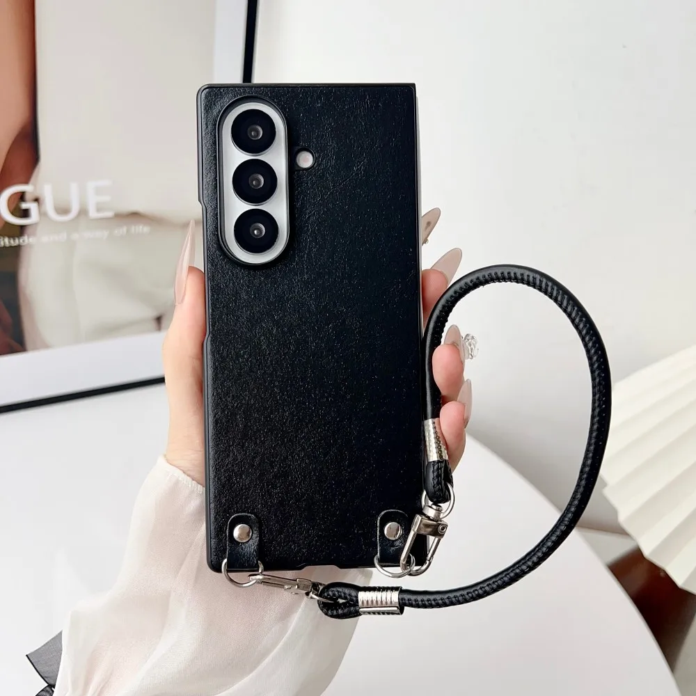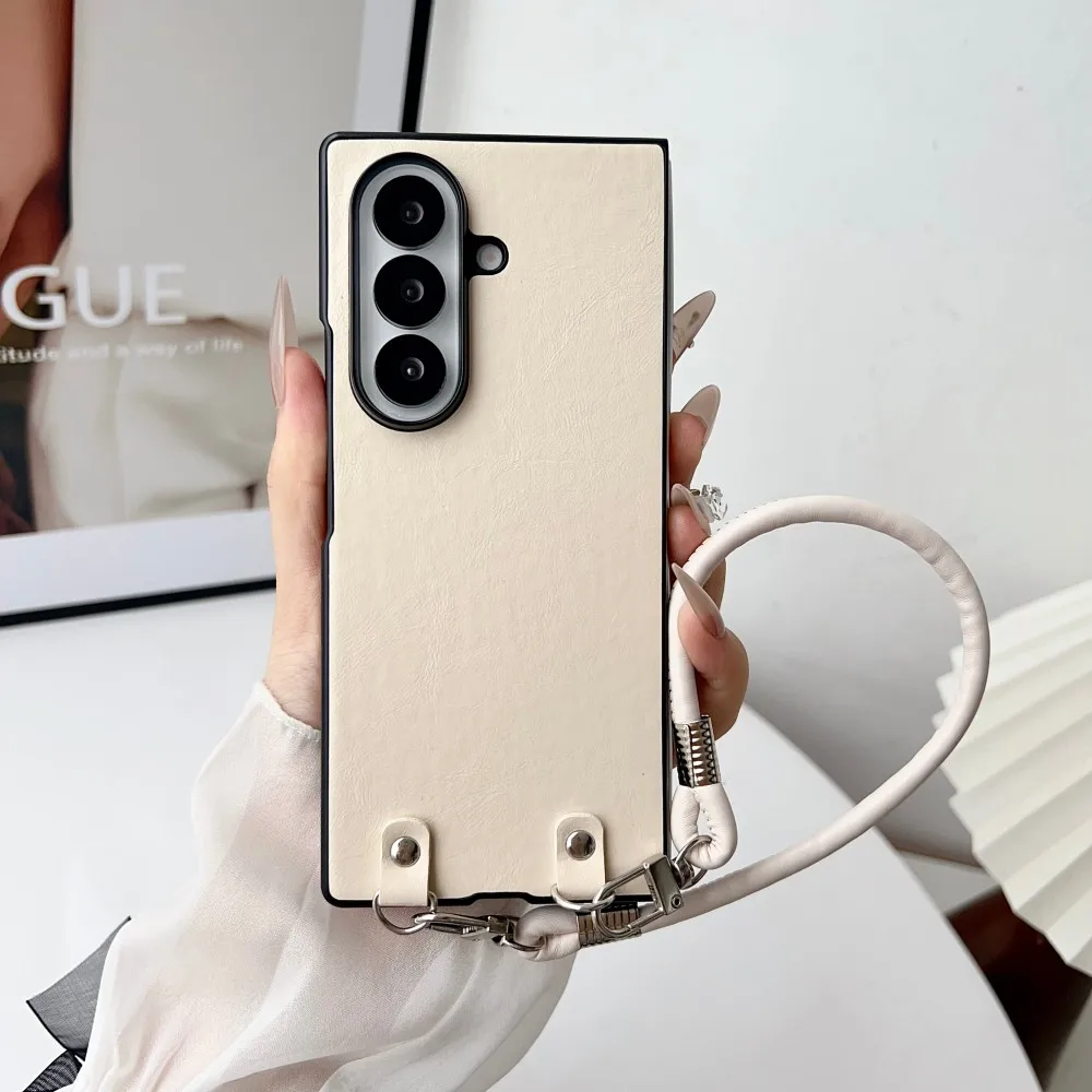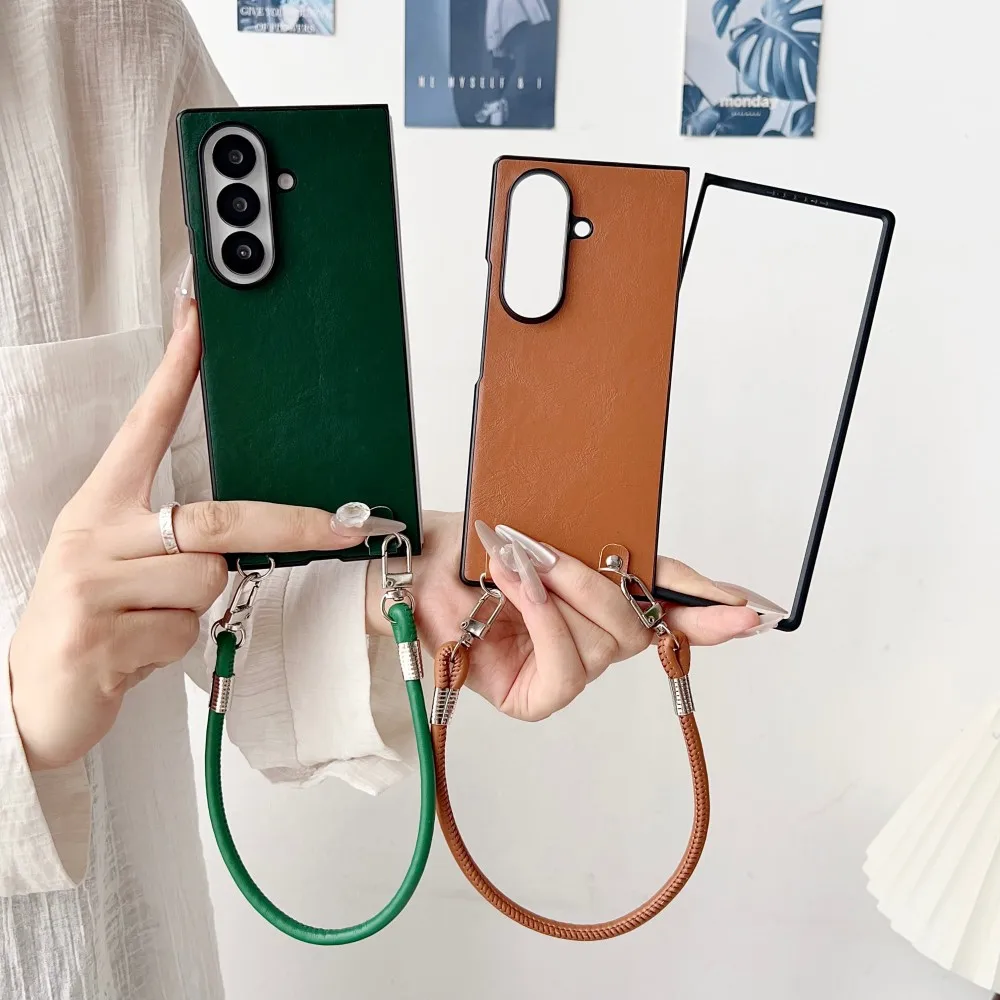 Para Samsung Galaxy Z Fold 7 funda de piel sintética de lujo con cordón funda protectora trasera para Samsung Z Fold7 6 5 4 carcasa de teléfono