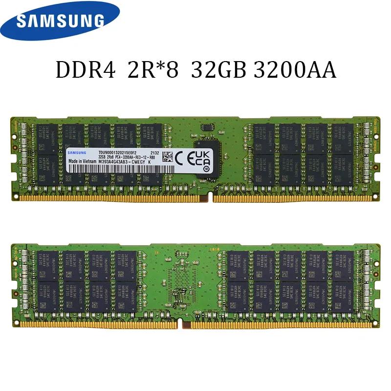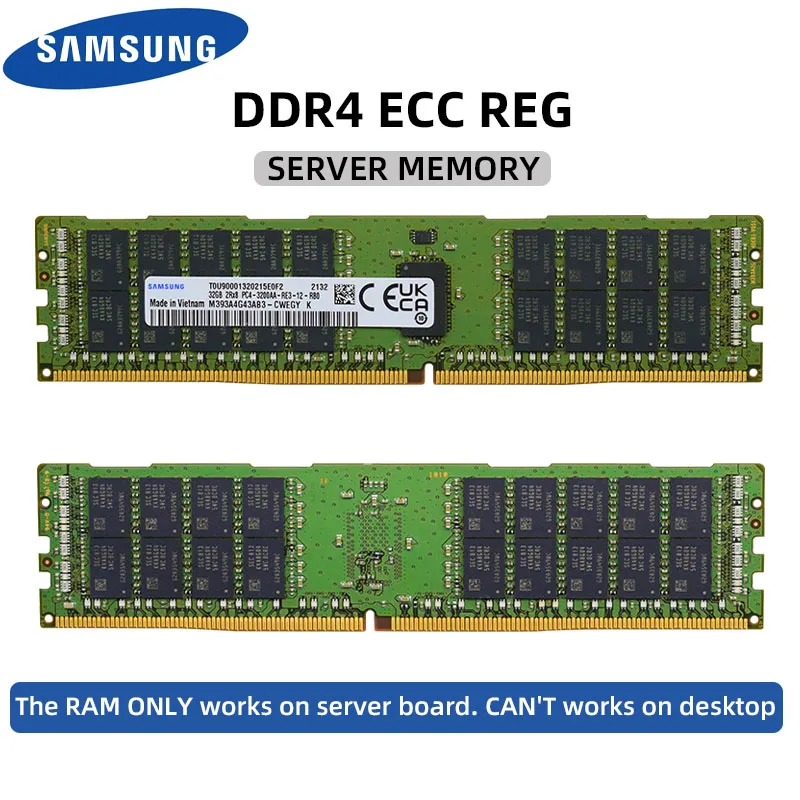 Comprar Samsung-memoria Ram DDR4, 64GB, 32GB, 16GB, PC4, 2400, 2666, 2933, 3200MHz, 2400, 2666V, 2933Y, 3200AA, ECC, REG, servidor, compatible con placa base X99
