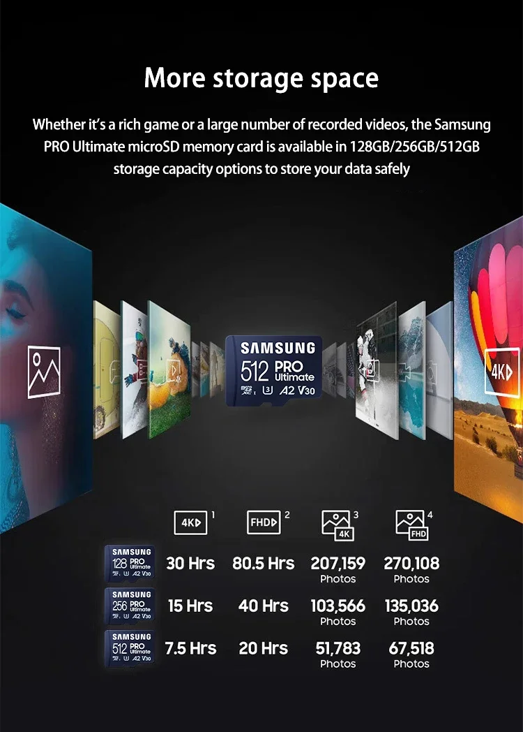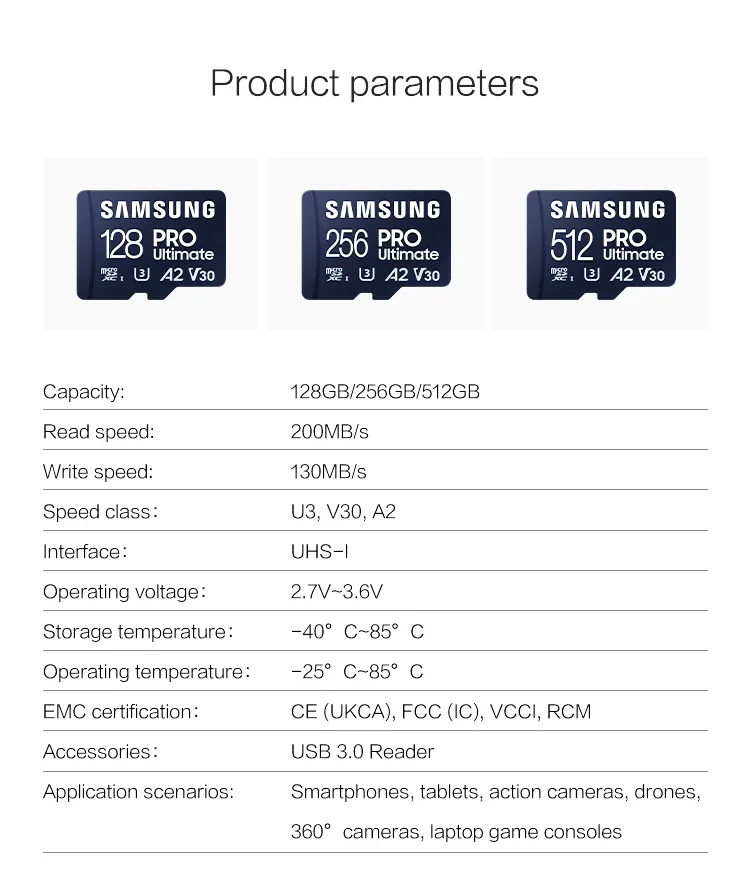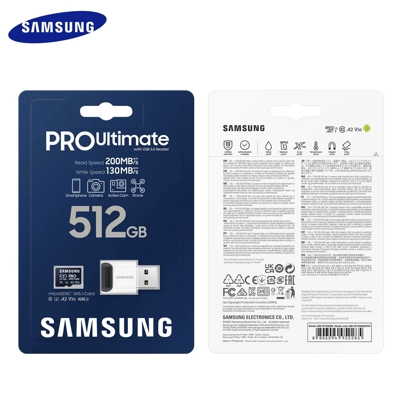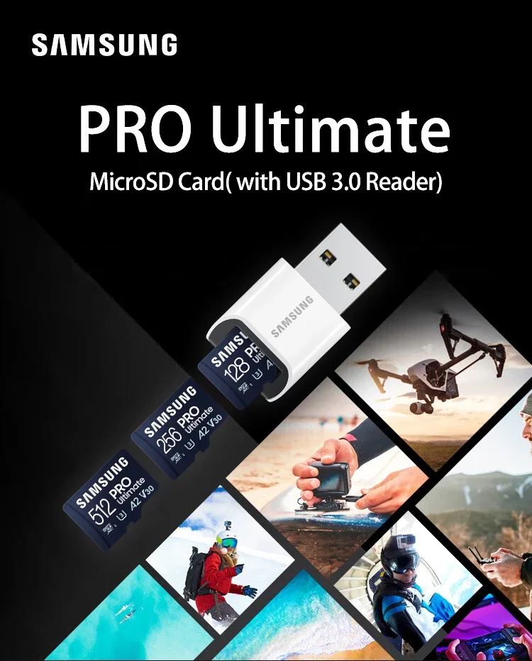 Comprar SAMSUNG Original TF PRO MicroSDXC 512GB 256GB 128GB tarjeta de memoria definitiva con tarjeta + lector V30 A2 leer 200MB/s tarjeta TF para Dron