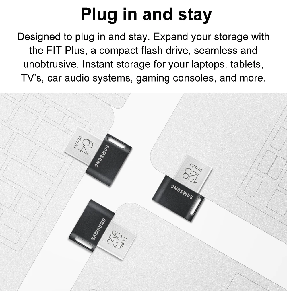 Comprar SAMSUNG Original USB3.1 Flash Drive FIT Plus 128G 256G 512GB 400 MB/s Mini Pen Drive de alta velocidad 64G Velocidad de lectura de hasta 300 MB/s