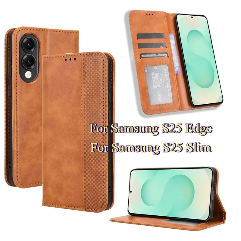 Para Samsung S25 Edge Retro Flip Book Funda de cuero para Samsung Galaxy S25edge S25 Slim Ultra Plus Funda magnética con ranura para tarjetas