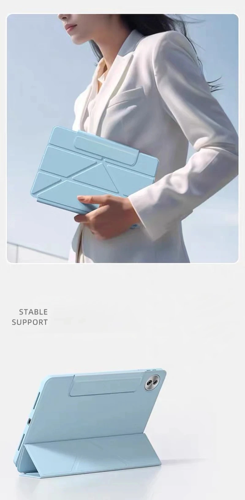 -La funda Tri-Fold Flip se puede plegar como soporte.