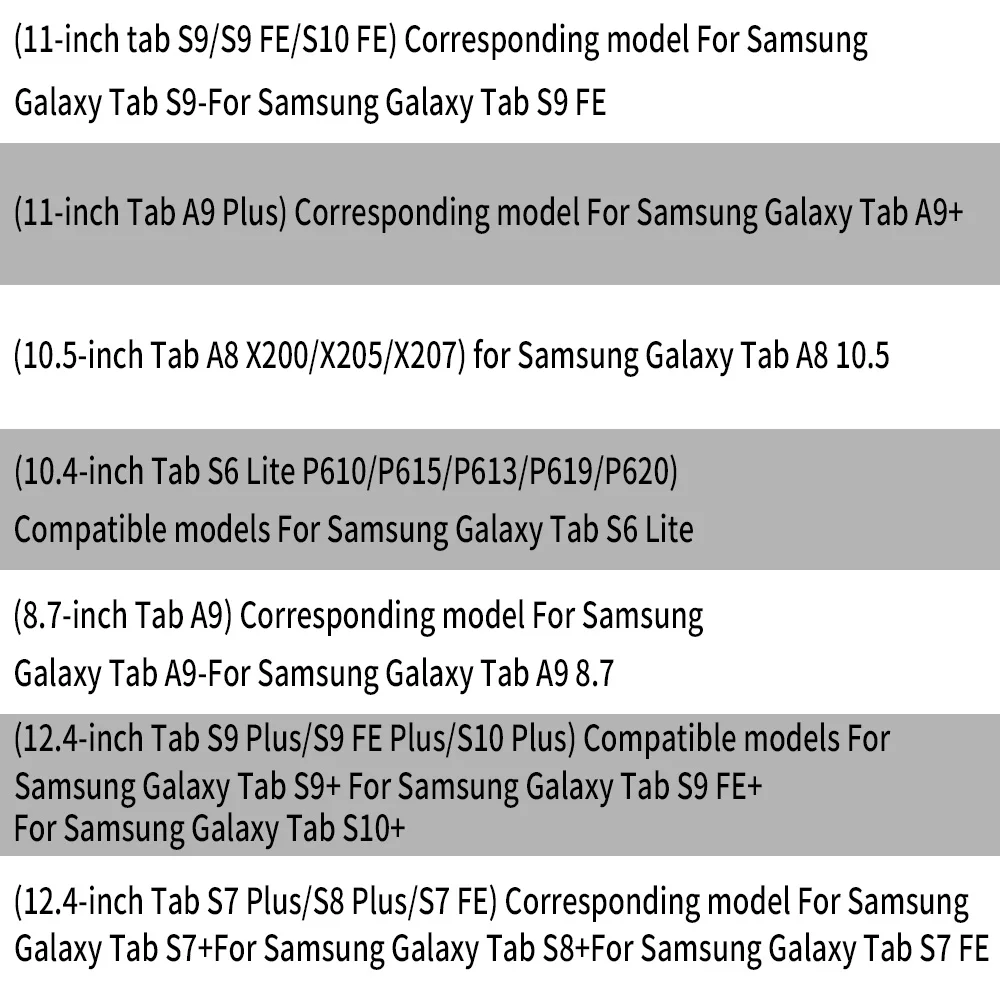 Para Samsung Galaxy Tab S9 FE+ 12,4 pulgadas, Versiones: Galaxy Tab S9 FE Wi-Fi SM-X610; Galaxy Tab S9 FE 5G SM-X616B