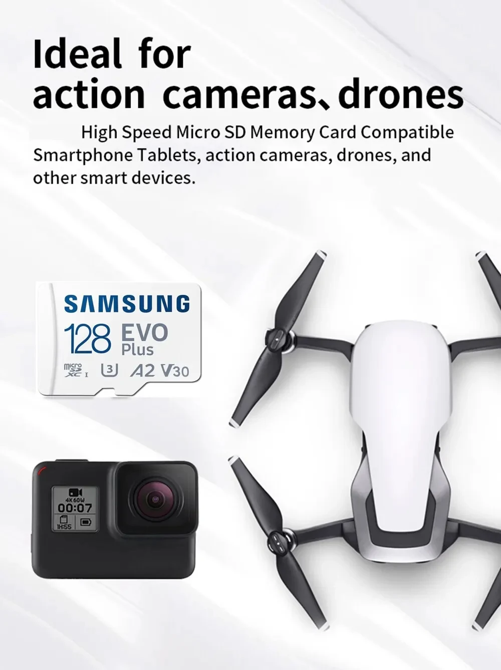 Comprar SAMSUNG-tarjeta de memoria Micro SD EVO Plus, 512GB, C10, TF, SDXC, 64GB, 128GB, 256GB, U3, V30, 4K, para cámara de Dron