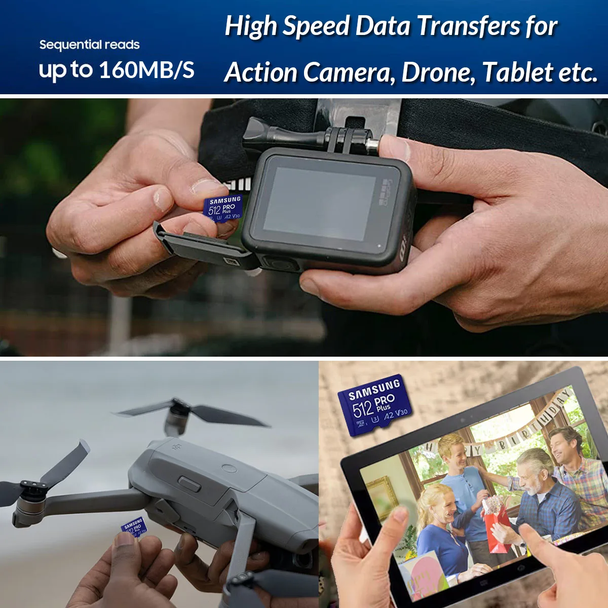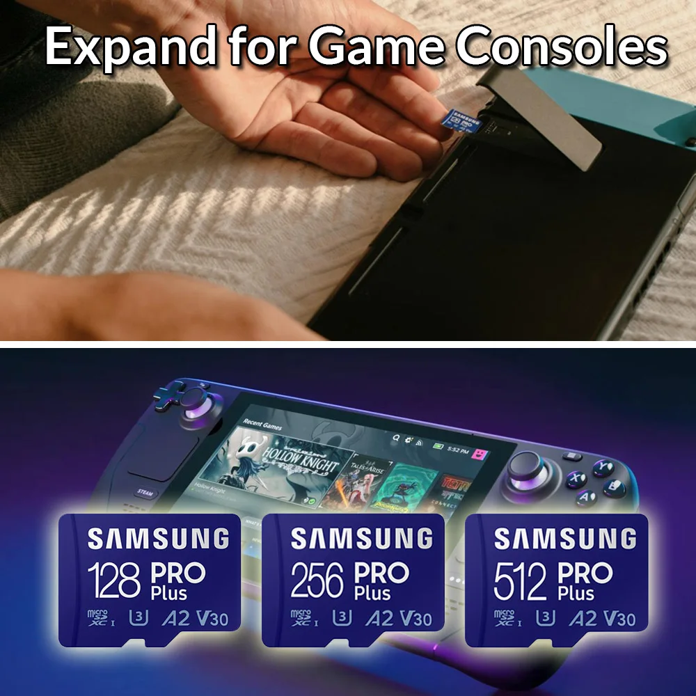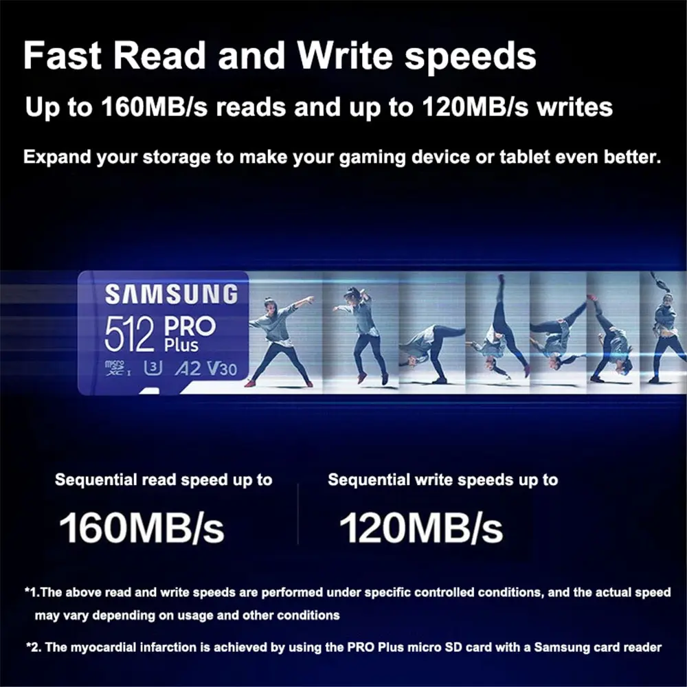 Comprar SAMSUNG-tarjeta de memoria Micro SD V30 PRO Plus, dispositivo para Cámara de Acción, Drone Switch Steam Deck, 128GB, 256GB, 512GB, C10, U3, 4K, A2