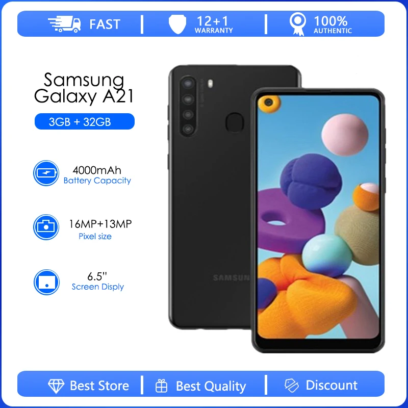 Comprar Samsung-teléfono inteligente Galaxy A21 A215U, Original, desbloqueado, 4000mAh, Android, Wi-Fi, GPS, 16.0MP, 6,5 pulgadas, 32GB, 3GB de RAM