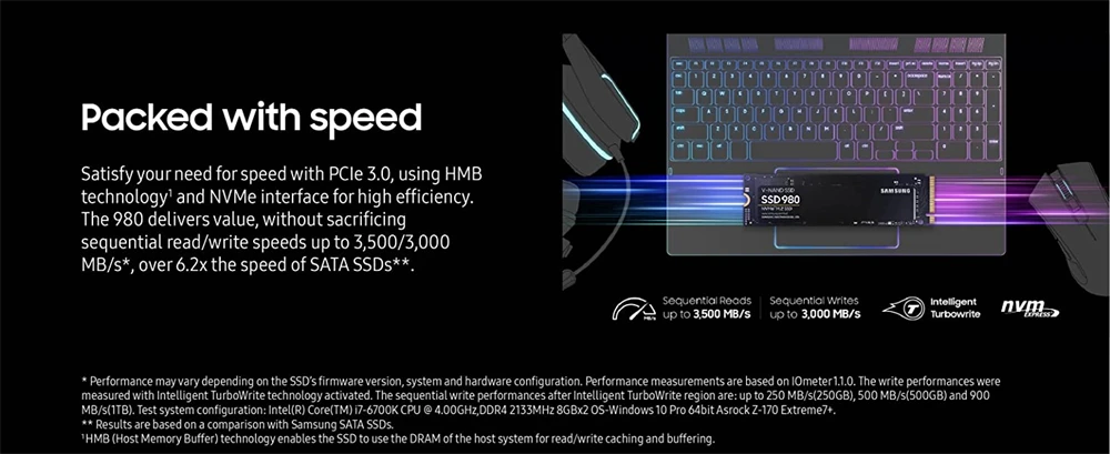 Comprar SAMSUNG-unidad de almacenamiento interna de estado sólido para PC, ordenador portátil, tecnología HMB, SSD 980, 1TB, 250G, 500G, PCle3.0x4, NVMe M.2 2280