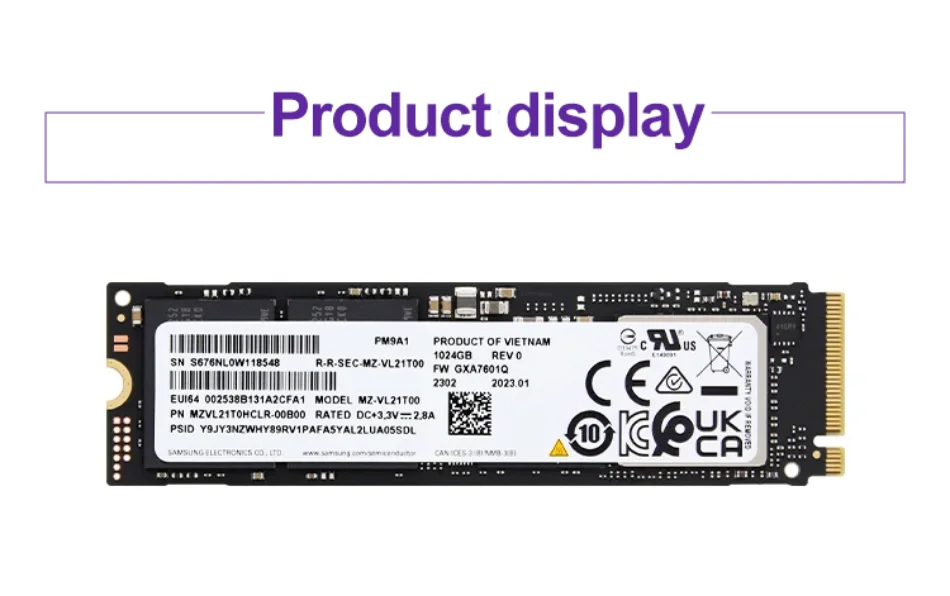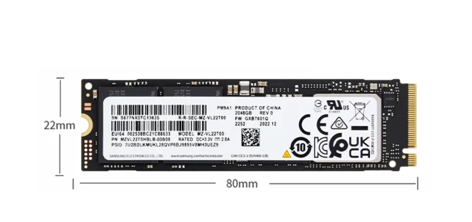 Samsung SSD 512GB 1TB 2TB PM9A1 M.2 2280 80mm NVMe PCIe 4,0 Unidad de estado sólido