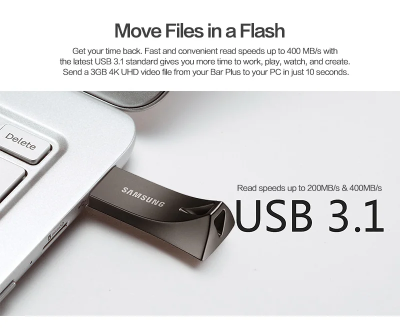 Samsung USB Flash Drive/USB 3,1 Mini Pen Drive 64GB 128GB 256GB Memory Stick Dispositivo de almacenamiento Disco U Velocidad de lectura de hasta 400 MB/s