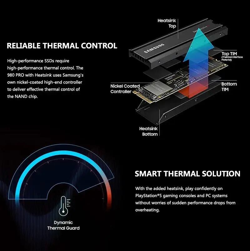 SAMSUNG-unidad interna de estado sólido SSD 980 PRO, Original, con M.2 NVMe disipador de calor, 1tb, 2TB, PCIe 4,0 M.2 2280, para ordenador portátil y de escritorio