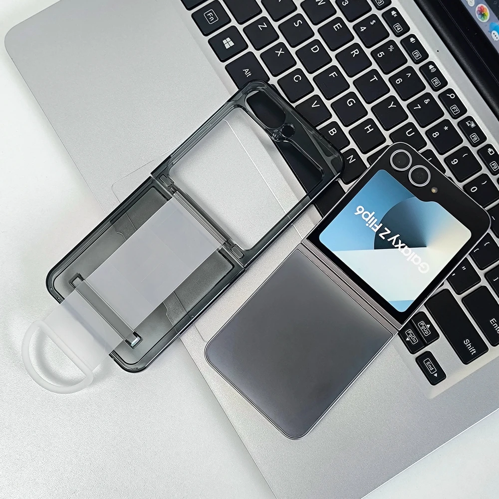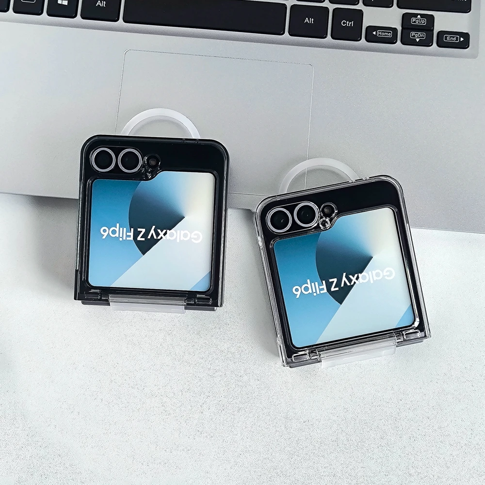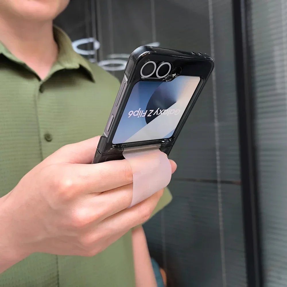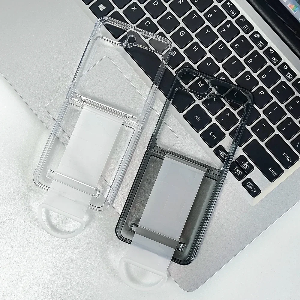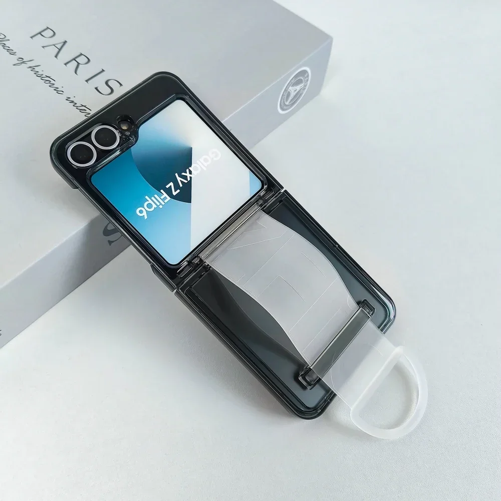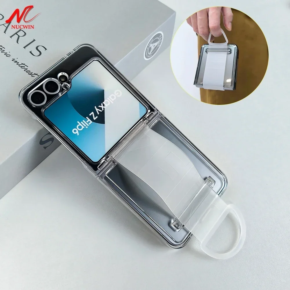 Para Samsung Z Flip 6 funda transparente con correa para la muñeca funda de lujo delgada mate con soporte de anillo para Samsung Galaxy Z Flip 5 6 ZFlip 6