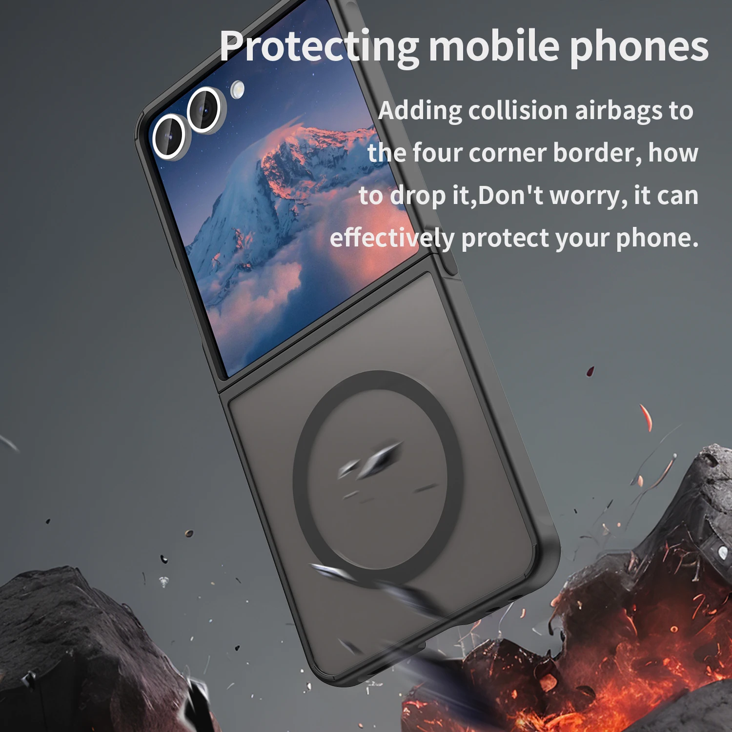 Funda translúcida resistente a los golpes y delgada para Samsung Galaxy Z Flip 7 Magsafe