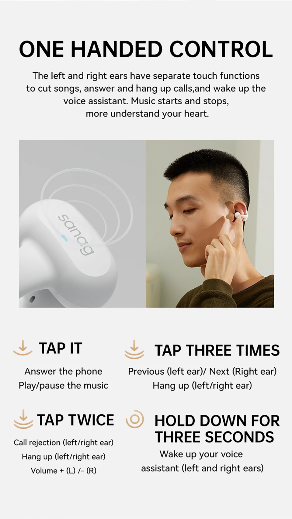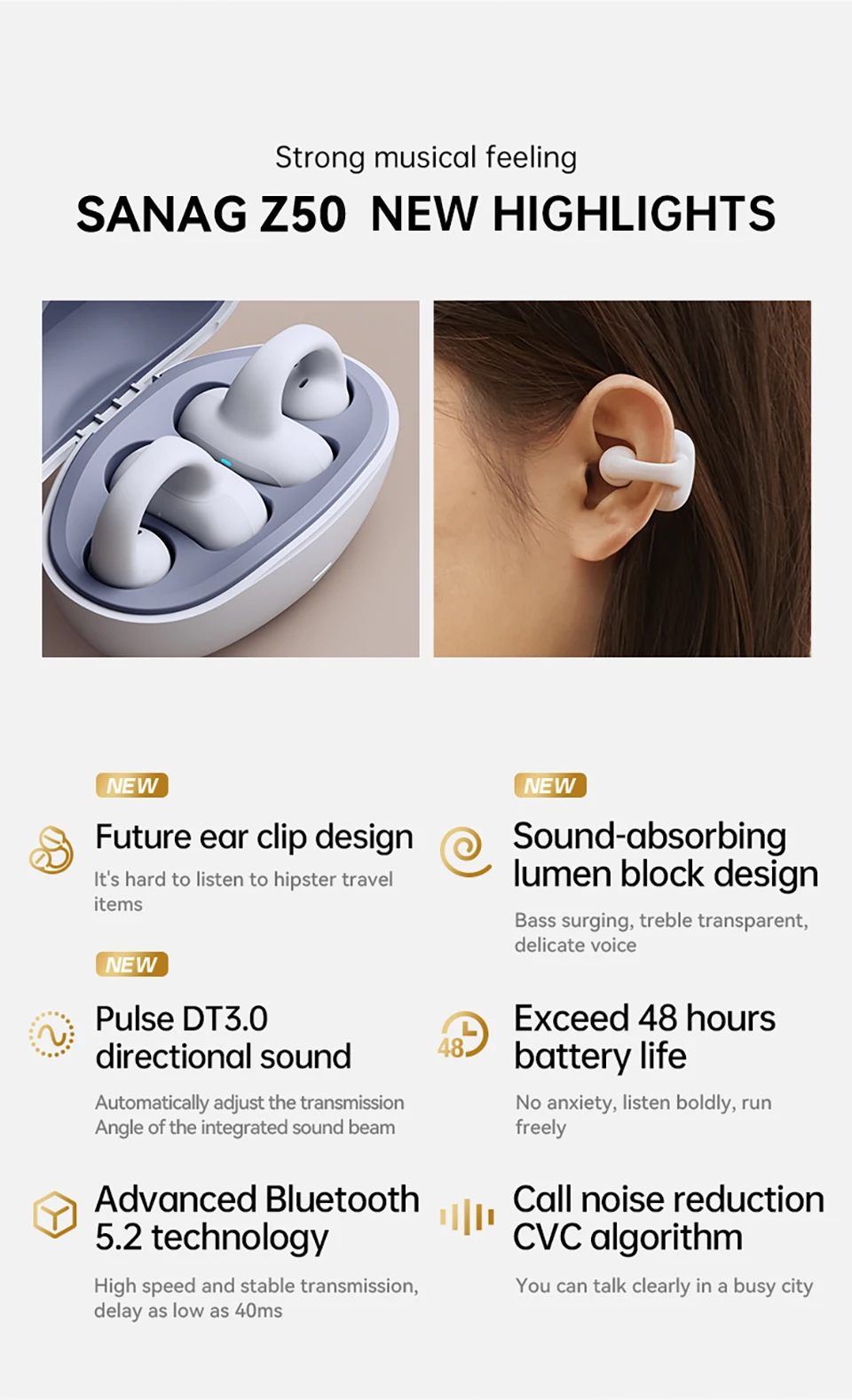 • Compacto y ligero:El auricular Sanag Z50s TWS es compacto y ligero, asegurando un uso cómodo y fácil portabilidad.