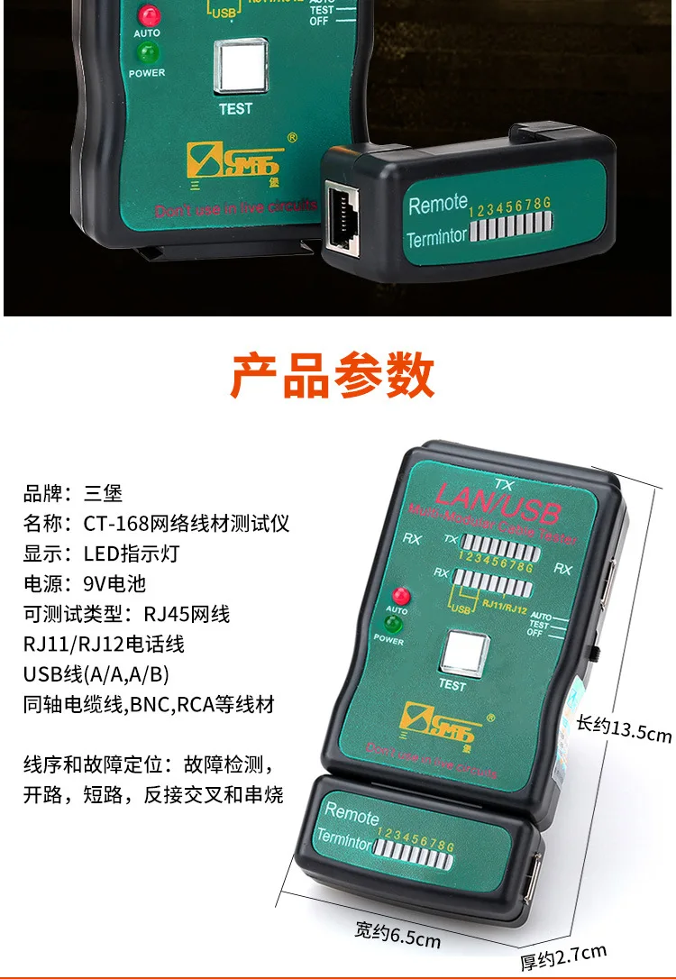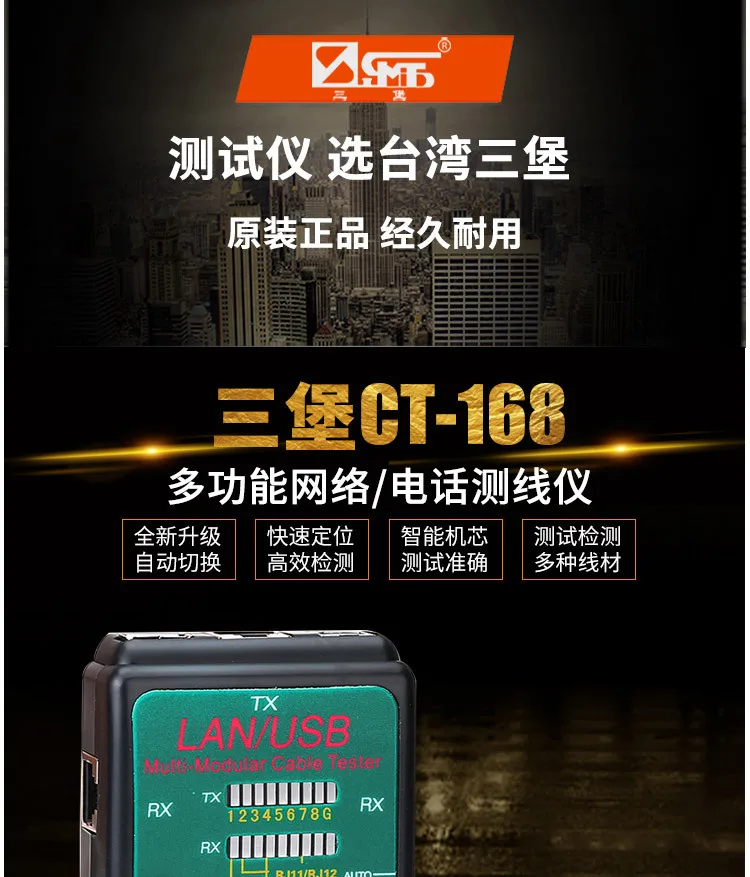Comprar Sanbao-detector de cable de red CT-168 RJ45, probador multifunción de cable USB, línea telefónica rj11