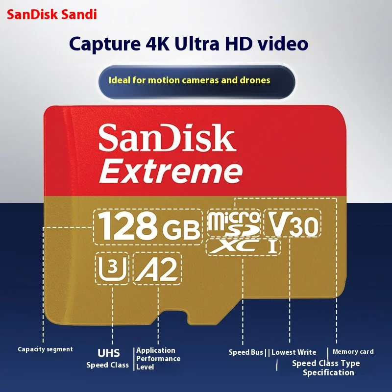 Comprar SanDisk 100% Original extremo MicroSD tarjeta TF tarjeta de memoria SDXC U3 A2 32GB 64GB 128GB 256GB 512GB para cámara Drone teléfono coche 4K