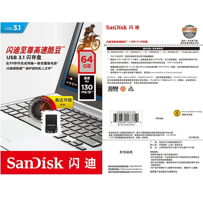 SanDisk CZ430 unidad Flash USB 400 MB/s mini unidad flash USB 3,1 64 GB 16 GB hasta 130 MB/S 512 GB 32 GB 128 GB 256G tableta PC - imagen 5