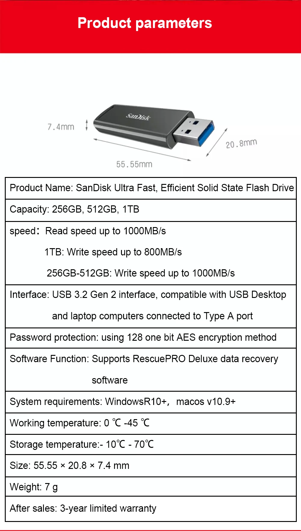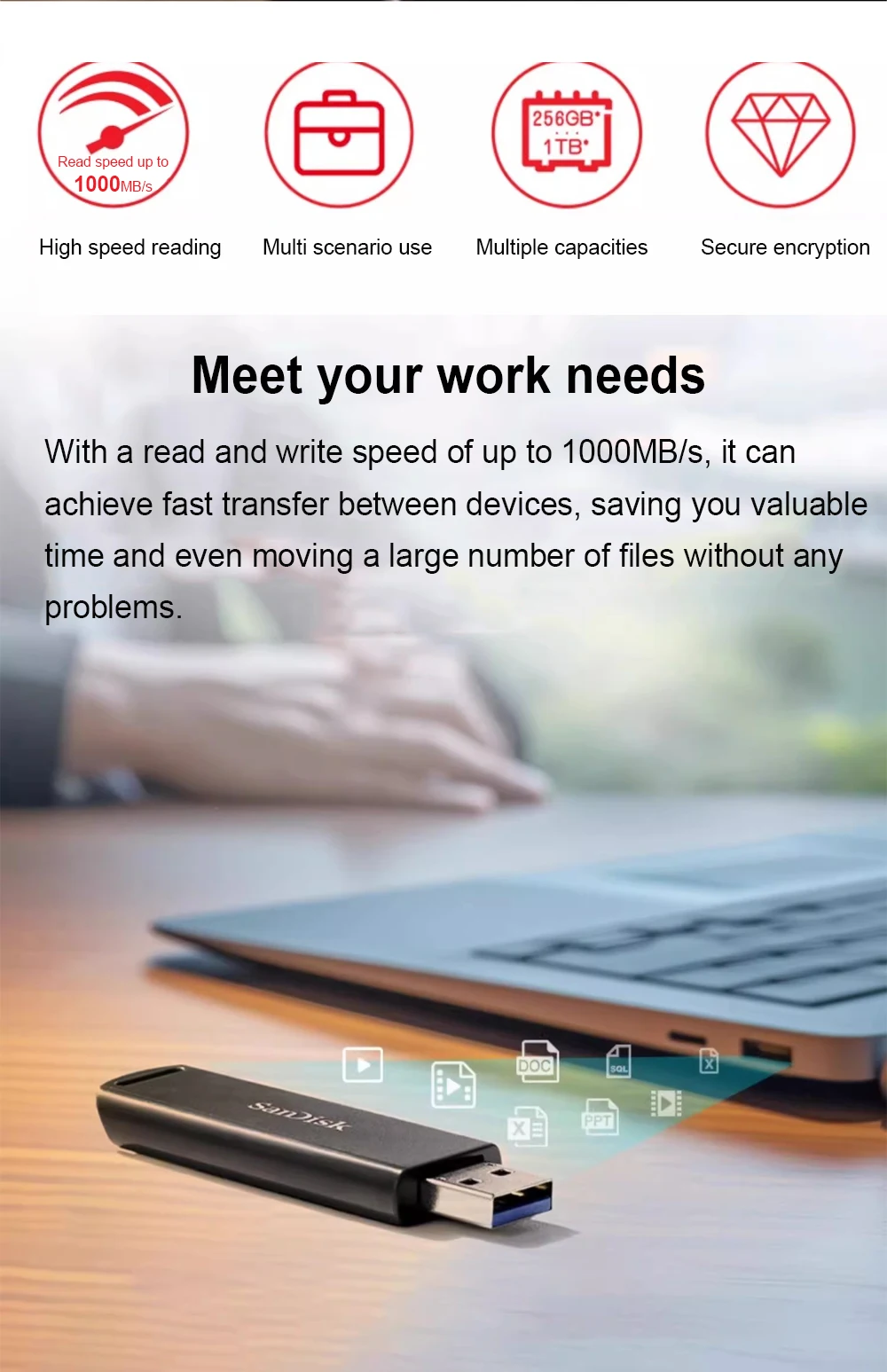 Comprar SanDisk CZ900 Unidad flash de estado sólido eficiente ultrarrápida definitiva 1 TB 512 GB 256 GB Velocidad de lectura 1000 MB/s Disco U cifrado seguro