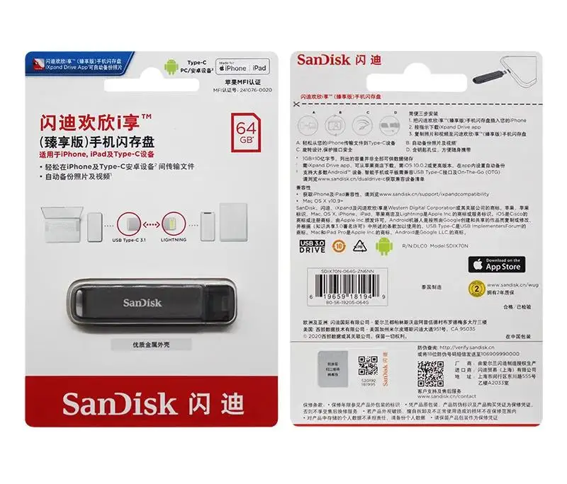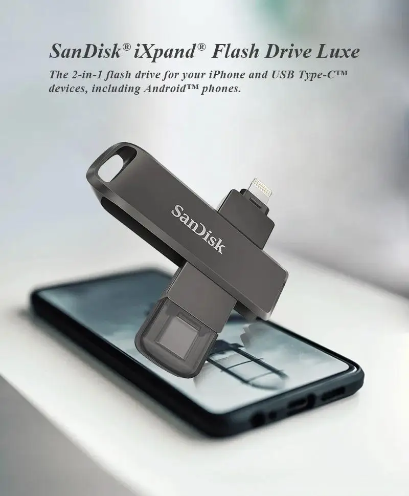 Comprar SanDisk OTG iXpand Flash Drive Luxe iX70 Pendrive tipo C y Lightning USB 64GB 128GB 256GMetal Memory Stick para iPhone Mac Laptop