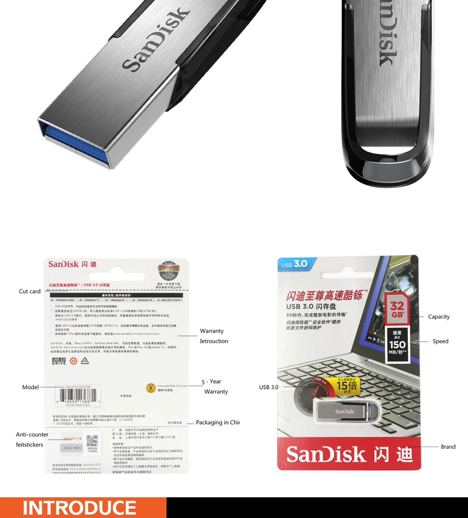 Comprar Sandisk-pendrive USB 3,0 CZ73 Ultra Flair, unidad flash Original de 256GB, 128GB, 64GB, 32gb, 16GB, 512GB, para negocios, para regalo de PC