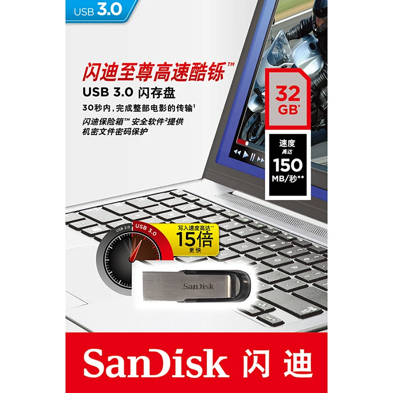¿El SanDisk Ultra Flair? La unidad flash USB 3,0 Mueve tus archivos rápidamente. Pasa menos tiempo esperando para transferir archivos y disfruta de un rendimiento USB 3,0 de alta velocidad de hasta 150MB/S1. Su carcasa metálica duradera y elegante es lo suficientemente resistente como para soportar golpes con estilo. Y, con la protección con contraseña, puede estar seguro de que sus archivos privados permanecen privados 2. Almacena tus archivos con estilo con la unidad flash SanDisk Ultra Flair USB 3,0.