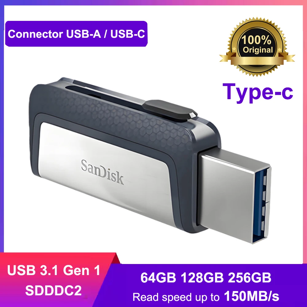 Comprar SanDisk SDDDC2 Ultra Dual Drive USB tipo C 64GB/128GB/256GB USB 3,1 de alta velocidad rendimiento de hasta 150 MB/s para teléfonos inteligentes/PC