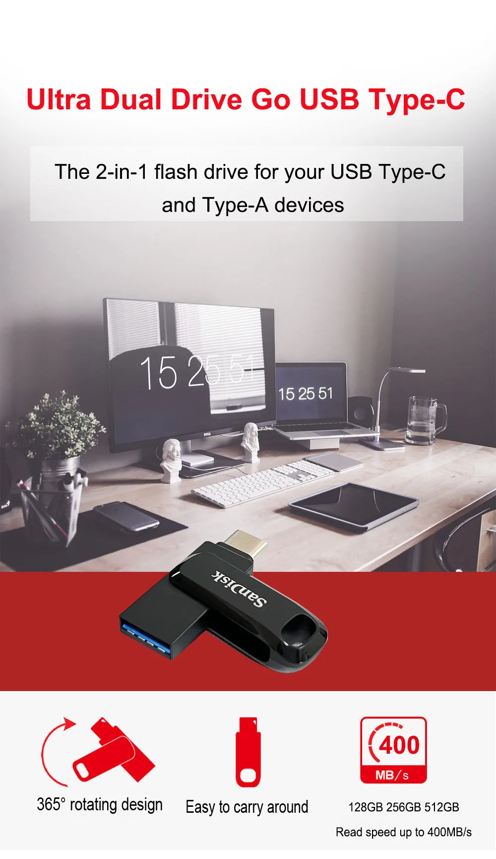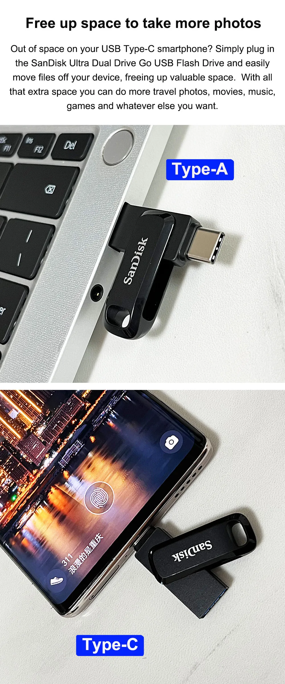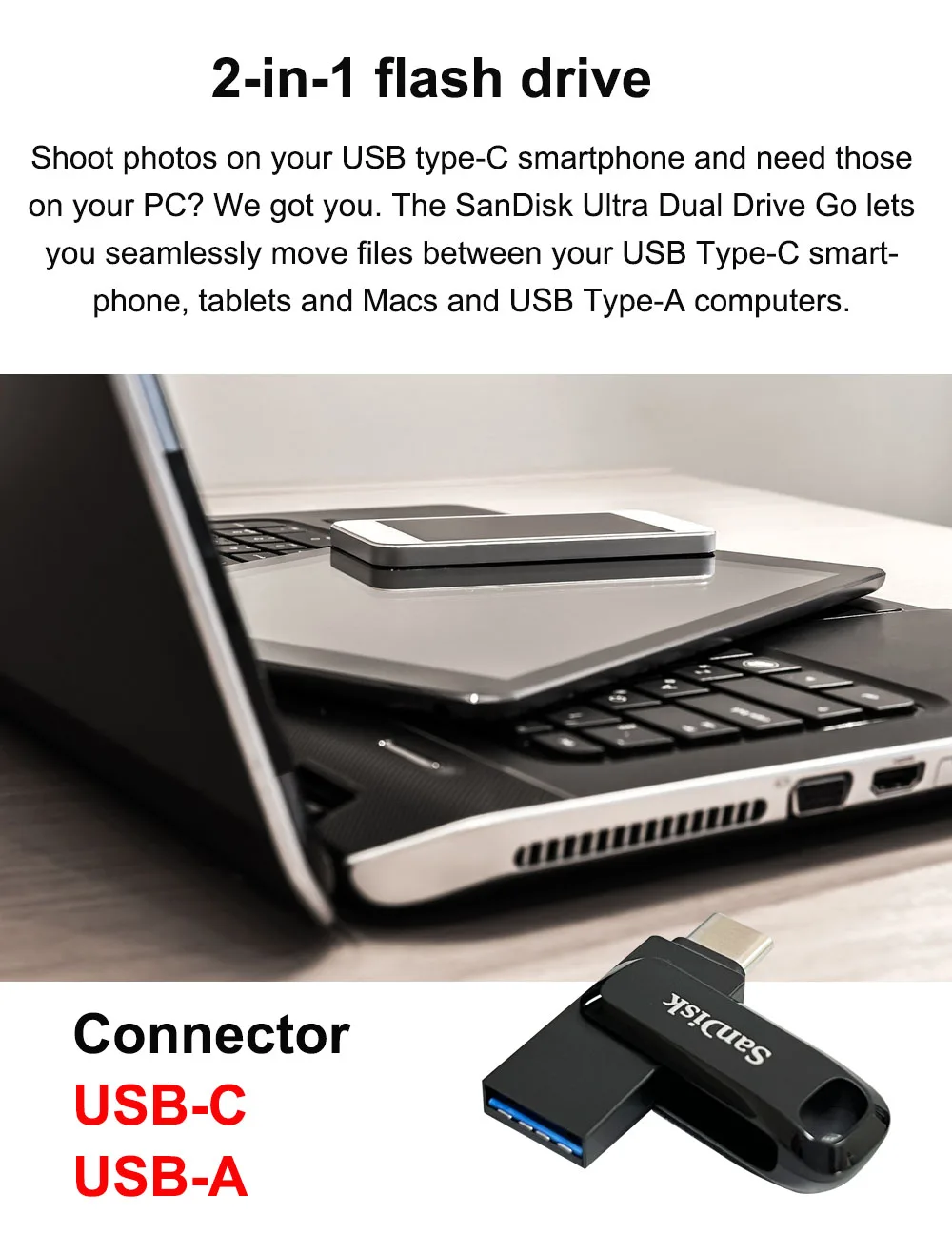 Comprar SanDisk SDDDC3 Ultra Dual Drive Go USB tipo C 64GB USB 3,1 128GB/256GB/512GB USB3.2 Gen 1 unidad para teléfonos inteligentes, tabletas y PC
