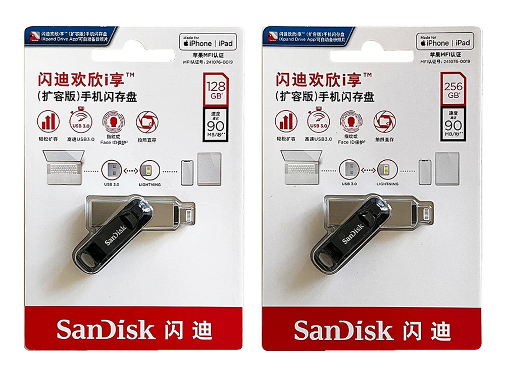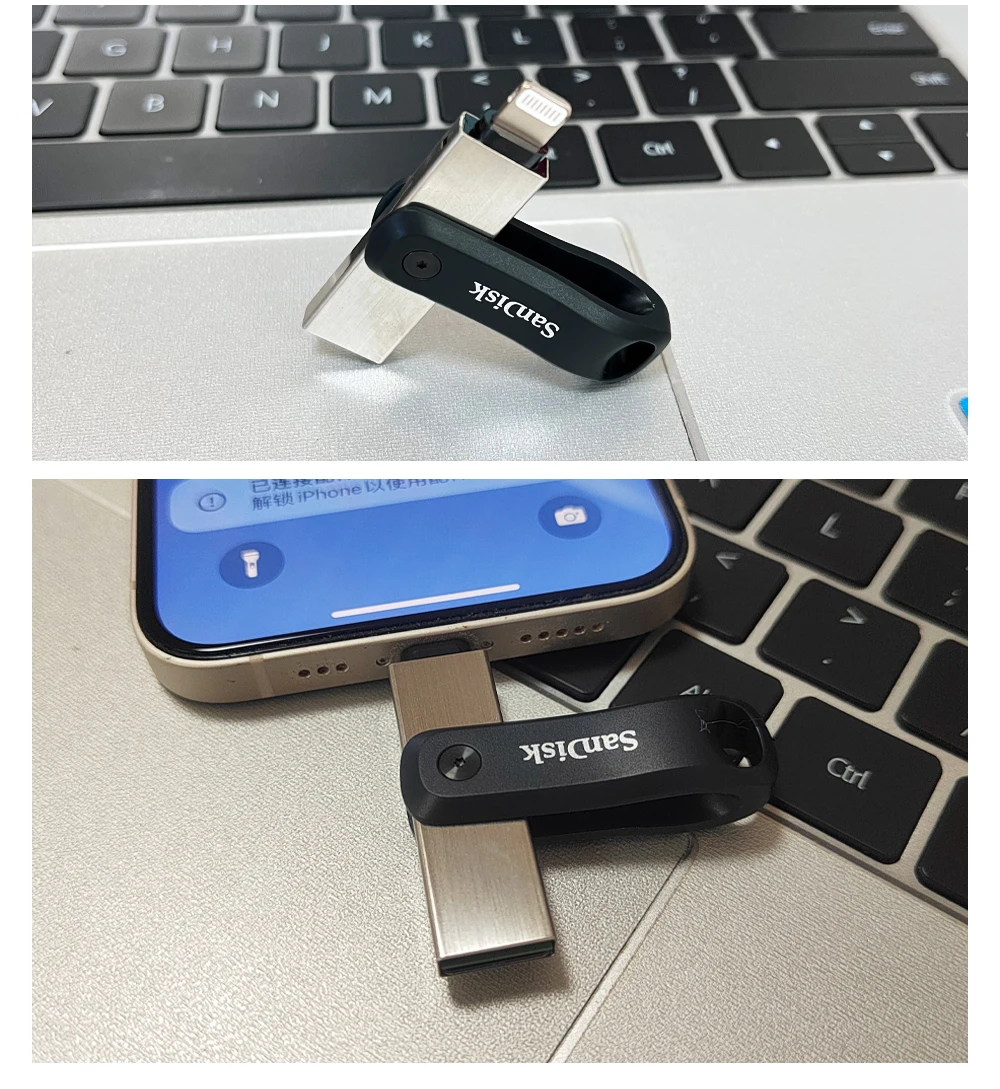 Comprar SanDisk SDIX60N unidad Flash USB3.0 giratoria de doble propósito 128GB 256GB disco U de Metal OTG conector relámpago para iPhone/iPad/PC