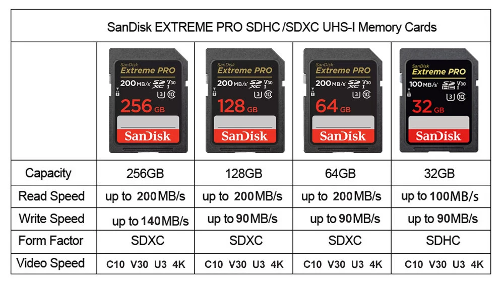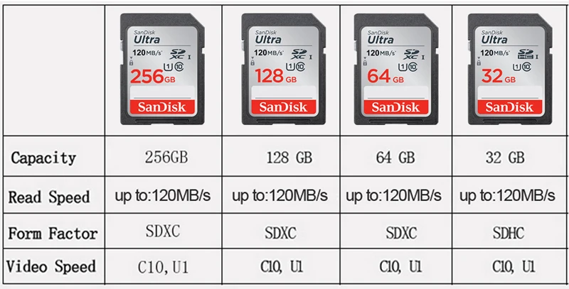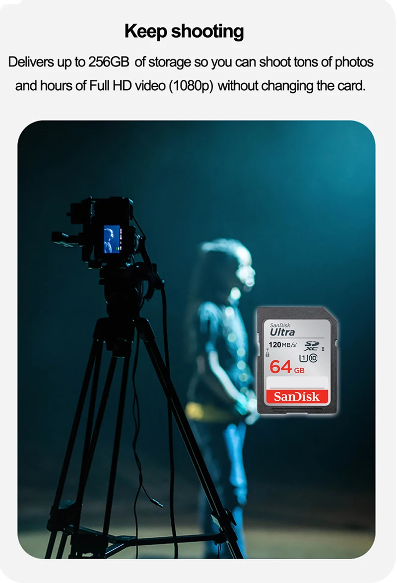 SanDisk-tarjeta de memoria Digital segura, 256GB, 128GB, 64GB, SDXC, 32GB, cámara SDHC, tarjeta de memoria Flash SD para videocámara de cámara SLR Digital