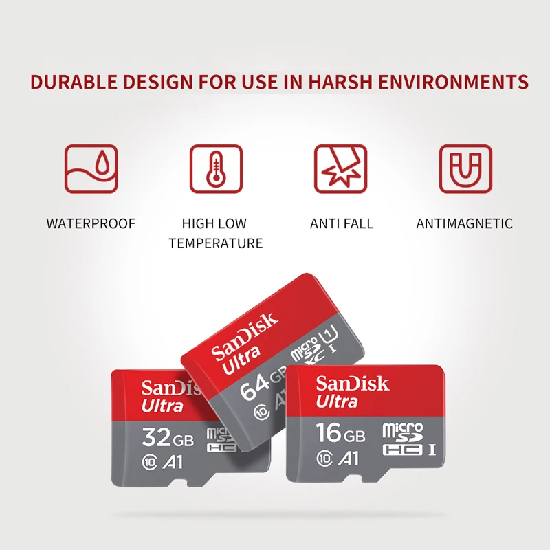 SanDisk Ultra 16GB MicroSDHC, Class10,A1, velocidad máxima de lectura a 98 MB/s;SanDisk Ultra 32GB MicroSDHC, Clase 10,A1, Velocidad máxima de lectura a 120 MB/s;SanDisk Ultra 64GB/128GB MicroSDXC, Clase 10,A1, Velocidad máxima de lectura a 140 MB/s;256GB/512GB MicroSDXC, Class10,A1, velocidad máxima de lectura a 150 MB/s;Por favor, lea atentamente. ¡Gracias!1. Nuestra tienda ofrece 100% productos originales.2. Todos los productos cumplen con el sitio web oficial de Sandisk.3. Los fabricantes se reservan el derecho, a su entera discreción, de cambiar o modificar los productos. La apariencia y el diseño del embalaje pueden cambiar sin previo aviso.4. No somos responsables de ningún cambio o modificación que el fabricante haga a los productos.Acerca de la capacidad:16GB=aproximadamente 14GB ~ 15GB32GB=aproximadamente 28GB ~ 30GB64GB=aproximadamente 56GB ~ 60GB128GB=aproximadamente 112GB ~ 120GB256GB=aproximadamente 224GB-240GB512GB=aproximadamente 448GB-480GBEsta es la diferencia de cálculo entre el fabricante y tu PC, por favor busca en Google "Capacidad de tarjeta de memoria" para obtener más información.Su PC dice 1 GB=1,073741824 mil millones de bytes donde el mercado define 1 GB=1,00 mil millones de bytes.Puntas cálidas:Las tarjetas Micro SD en mi tienda son100% capacidad real original con 10 años de garantía
