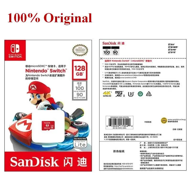Comprar SanDisk-tarjeta de memoria micro SDXC UHS-I para Nintendo Switch, tarjeta TF con adaptador, Original, nuevo estilo, 128gb, 64GB, 256GB, 400GB, 512GB