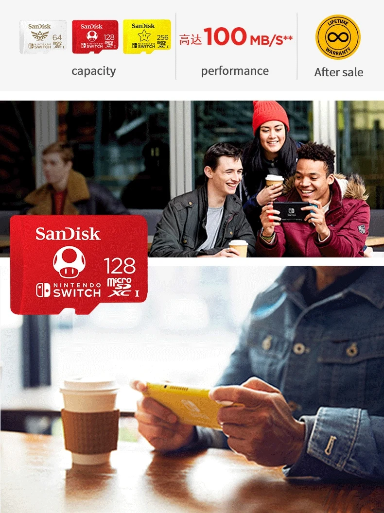 Comprar SanDisk-tarjeta de memoria Micro SDXC UHS-I para Nintendo Switch, tarjeta TF con adaptador, Original, nuevo estilo, 128GB, 64GB, 256GB, 400GB, 512GB