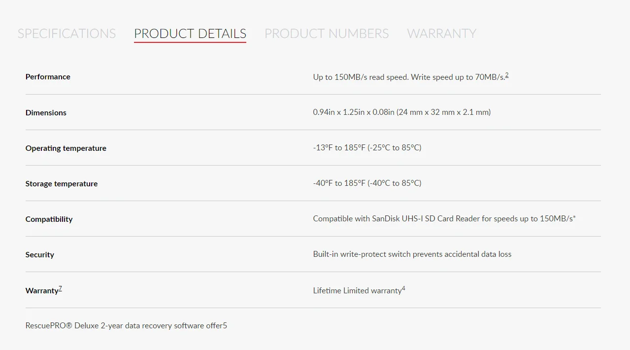 2. Todos los productos están en línea con el sitio web oficial de Sandisk.