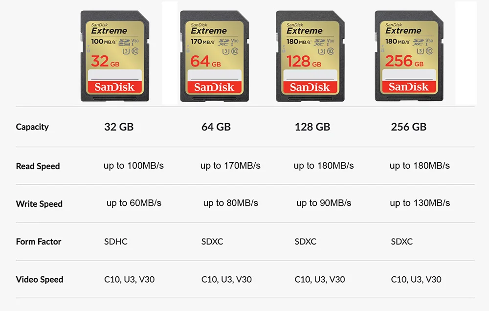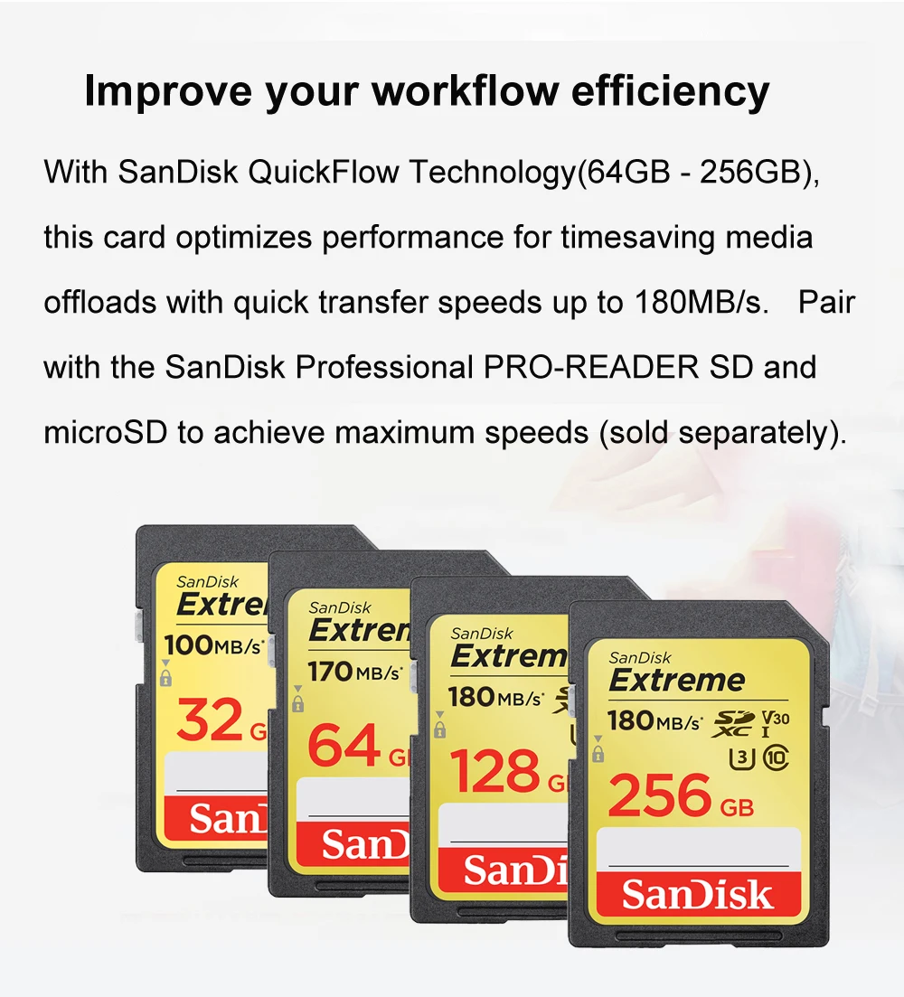 Comprar SanDisk-tarjeta de memoria V30 Extreme SD para videocámara, tarjeta de vídeo 4K, C10 U3, 32GB, 64GB, 128GB, 256GB, 512GB, hasta 180 MB/s