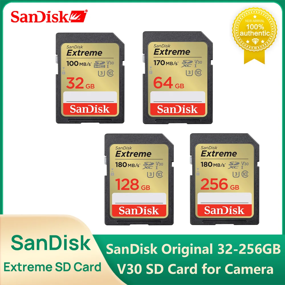 Comprar SanDisk-tarjeta de memoria V30 Extreme SD para videocámara, tarjeta de vídeo 4K, C10 U3, 32GB, 64GB, 128GB, 256GB, 512GB, hasta 180 MB/s