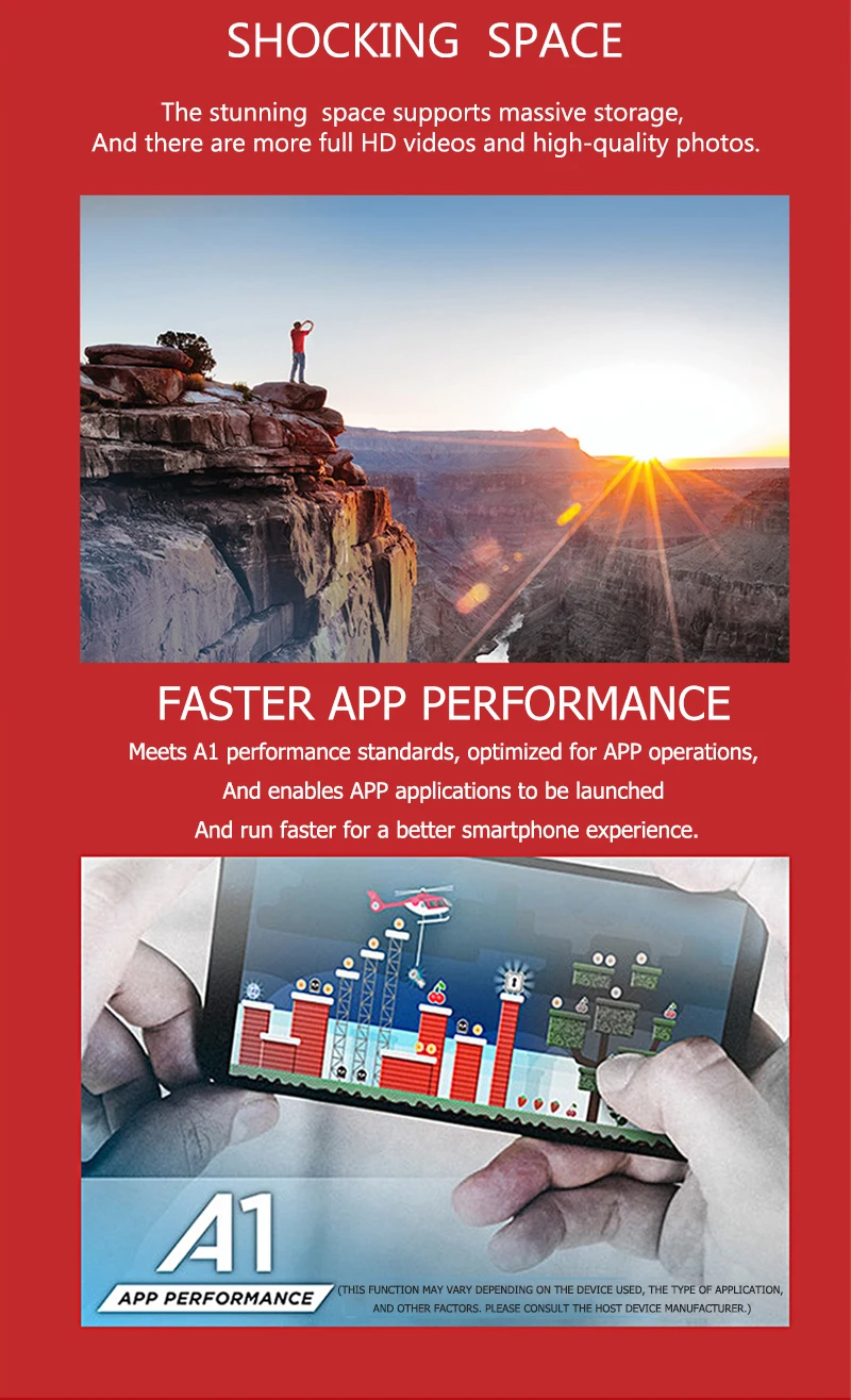 La tarjeta de memoria microSDXC UHS-I móvil de alta velocidad SanDisk es impermeable/resistente a impactos, resistente al frío y resistente a los rayos X. Puedes disfrutar de la aventura sin preocuparte por la durabilidad de la tarjeta de memoria.