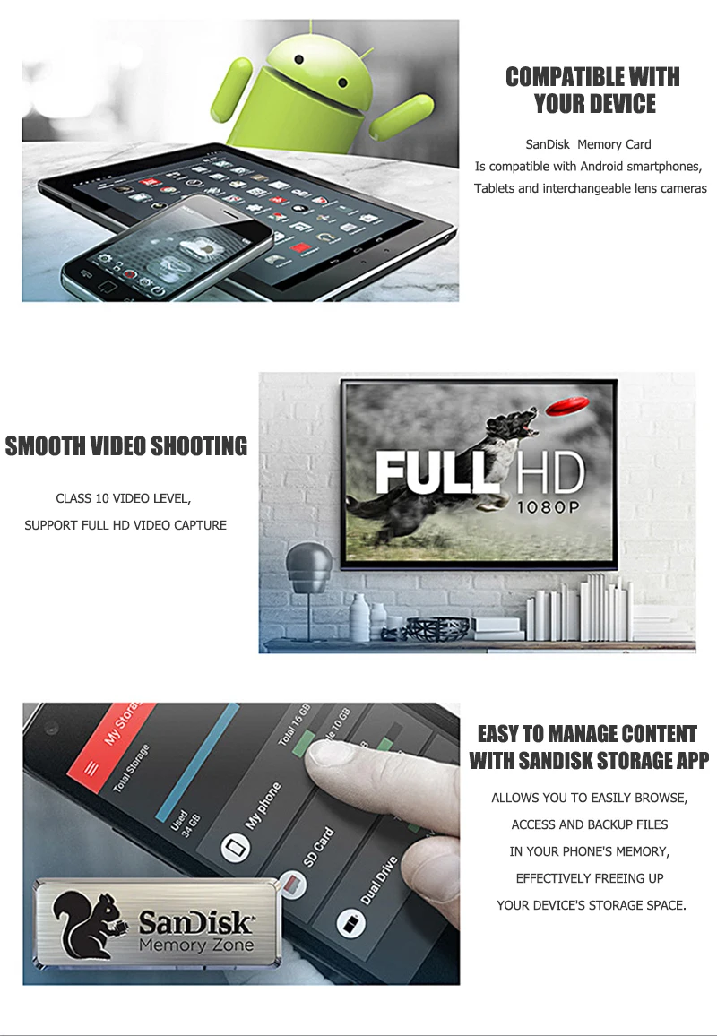 Compatible con su dispositivoLa tarjeta de memoria móvil SanDisk es compatible con smartphones Android, tabletas y cámaras con lentes intercambiables
